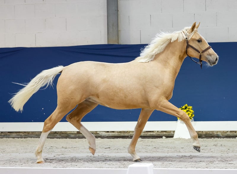 In unserer Kollektion stehen streng selektierte Youngster f�r alle Anspr�che: Ausbildungs-, Zucht- und Kinderponys Hier gelangen Sie zur Gesamtkollektion: https://ponyforum.auction Assenmachers Ekstase ist eine großaufgemachte Palominostute. Im väterlichen Pedigree stehen der Holsteinische Siegerhengst Steendieks Exklusiv von Escolar und der Doppelbundessiegerhengst Morgenstern Dalai. Die Mutter ist eine Schwester zum 2. Reservesiegerhengst FS New Chance und zu FS Nala, erfolgreich in Dressurprüfungen Klasse M.