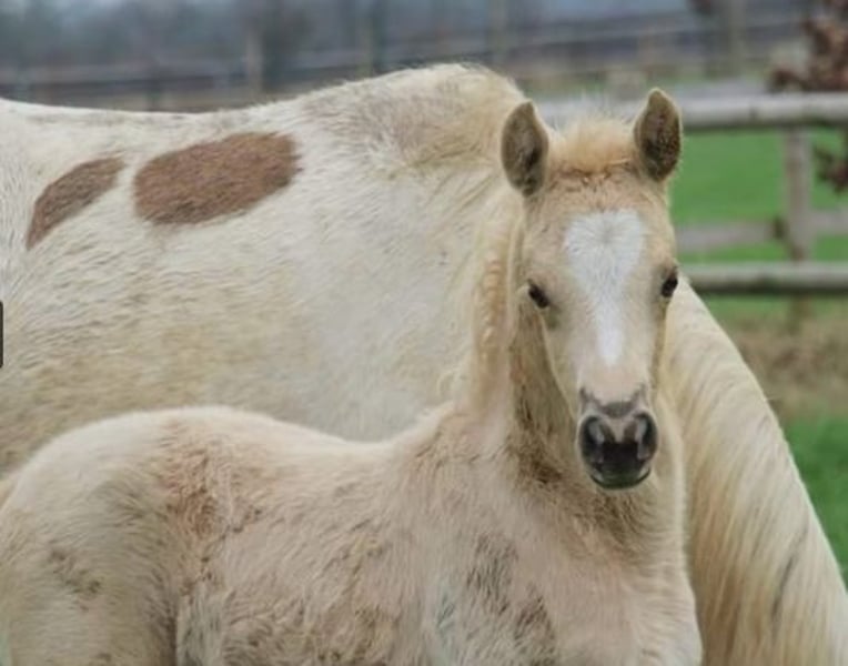 For sale is a German Riding Pony mare in a stylish palomino coat. "Dear Lady Whistledown" was born in January 2024 and is very sweet, eager to learn, and cuddly in handling. She can be led, tied, and is also fine with being hosed down. Not only does she have a great character, but she also possesses three very good basic gaits. Her sire, Donnertraum (Donnerwetter x Nurejew), was himself highly successful at the Bundeschampionate and later in FEI dressage competitions, including being a European Champion and Dutch Champion. His offspring impress in both breeding and sport, characterized by rideability and clarity of mind. Her damsire, Jacky Boy, was the champion at the licensing and a bronze medalist in Warendorf. His offspring are successful in both disciplines and stand out for their heart and willingness to perform. The dam line is secured through Cassini/Valido/Nadler I with absolute rideability guarantees. Both sire and damsire are free of ECVM as confirmed by X-rays.