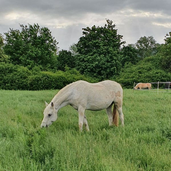 Con grande tristezza devo separarmi dalla mia fantastica pony da sella Parodie. Per motivi di salute non mi è più possibile occuparmi di lei, quindi sono costretta a intraprendere questa strada. Parodie è stata il mio cavallo del cuore per 9 anni. È docile nel maneggiarla e ama le lunghe sessioni di pulizia. Purtroppo non può essere ceduta come cavallo da sella, poiché a causa di un'artrosi della giuntura del garretto ogni tanto presenta dei tic. Questa condizione è stata trattata presso la clinica di Groß-Wallstadt. Sono disponibile a fornire ulteriori informazioni su richiesta. È comunque possibile montarla in passeggiata (in gruppo). Inoltre, ama molto il lavoro a terra, dove è sempre molto apprensiva e impegnata. Negli anni ha tossito di tanto in tanto. Con una buona gestione di fieno bagnato e (se necessario) inalazioni, sono riuscita a controllarlo molto bene. Il benessere della mia pony è per me la priorità assoluta, quindi Parodie è sempre stata regolarmente vaccinata, sverminata, è stata dal maniscalco (senza ferro) e ha fatto il controllo annuale dal dentista (marzo 2025). Naturalmente, cederò anche tutto l'equipaggiamento di Parodie, che consiste in diverse coperte, capezza e attrezzatura per la pulizia. È una pony meravigliosa, che darebbe tutto se avesse le persone giuste al suo fianco. Ha un cuore enorme, anche se misura solo 1,46 m al garrese. Con i suoi 22 anni non si sente affatto in pensione, è sempre molto coinvolta. Il mio desiderio più grande è trovare per Parodie una casa in cui venga amata dalle persone tanto quanto la amo io. La priorità è trovare un buon posto, non il prezzo, poiché desidero solo il meglio per lei!