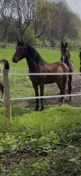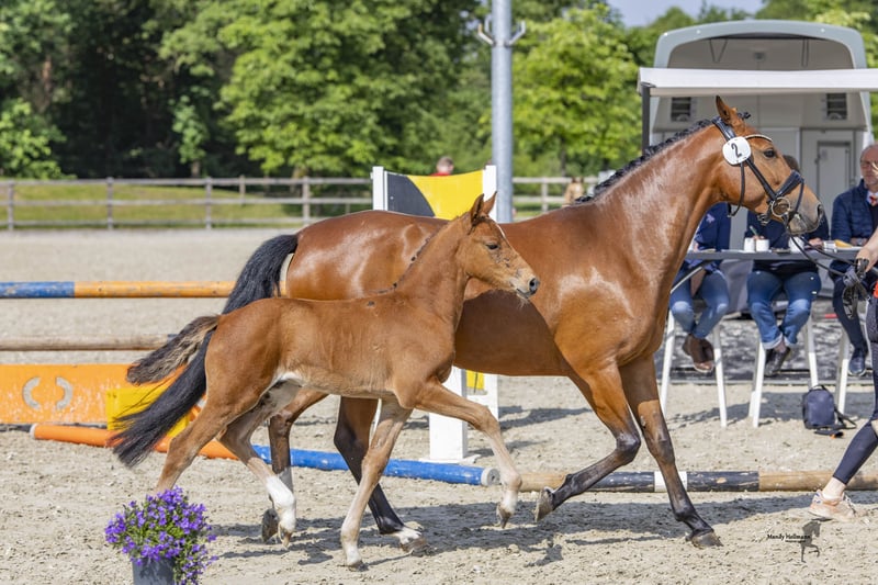 Mutter ist staatsprämiert, Reitpferdeprüfung gegen Großpferde hoch platziert und war 2. Reservesiegerin der Elitestutenschau in Westfalen.