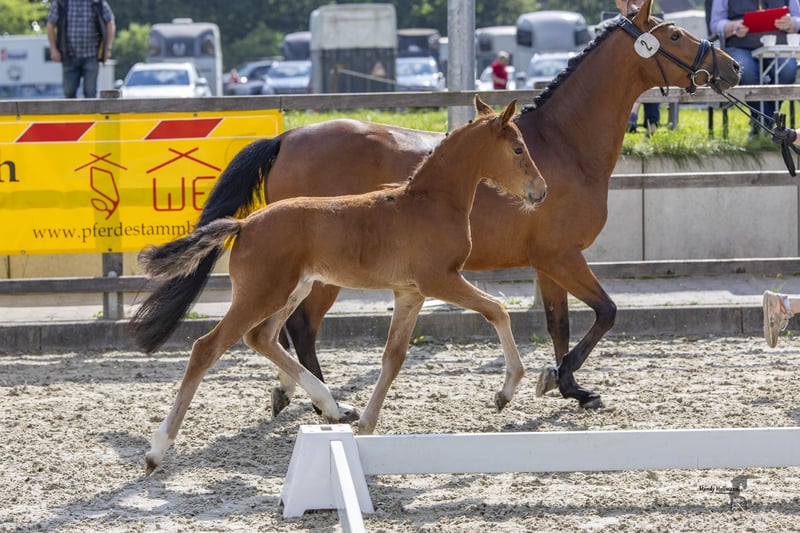 Großmutter ebenfalls Staatsprämiert, Siegerin der Bezirksstutenschau, Weser-Ems Siegerfohlen, L Dressur erfolgreich und war Vize Bundeschampioness im Fahren.