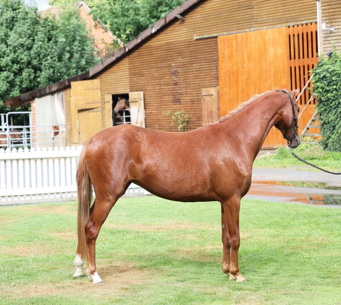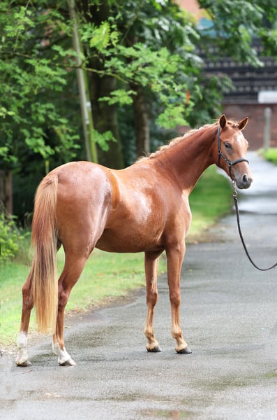 Dance Star AT - Golden Dancer - Aratoss - Brillant Jamaica, her mother is the sister of the Bundeschampion of dressage ponies, "Melli’s Glückskeks." She is the first foal of her dam and is endowed with excellent movement and a lot of courage. Therefore, she has the potential not only for a successful career in dressage but possibly also in eventing or driving. She is familiar with traffic and tractors, crosses bridges, and has experience with ground work and riding over platforms. A wonderful family pony with great potential. Her entire family is at home with us, including our 29-year-old great-grandmother. Unfortunately, we lack the suitable rider for further training. €3,950 fixed price