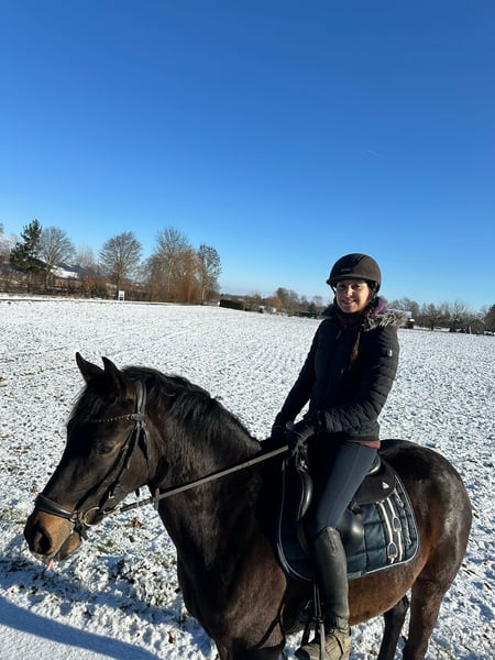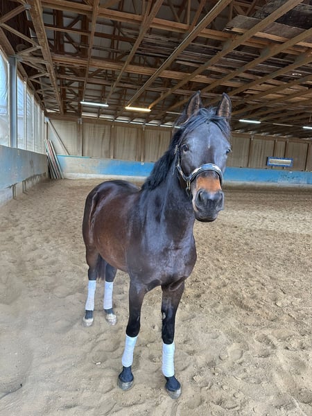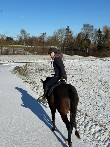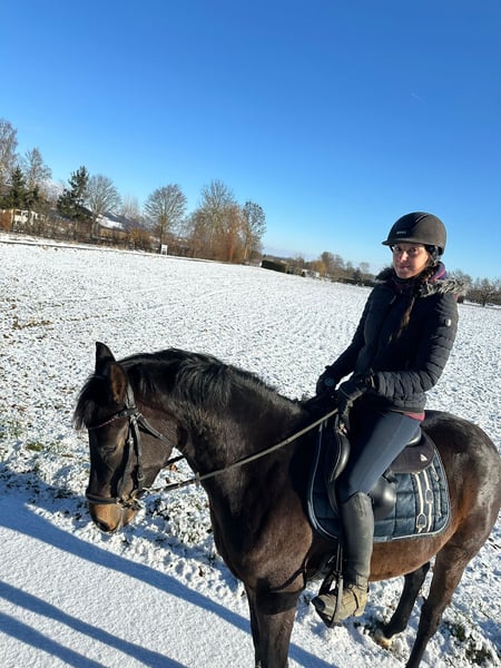 Hallo, aus Gründen der Bestandsverkleinerung muss ich mich leider von meiner Endmaßstute trennen, der Plan war es eigentlich, sie selbst im Sport zu reiten. Wir haben im Dezember angefangen, sie schonend im Gelände anzureiten, dabei hat sie sich immer nervenstark und motiviert gezeigt. Mittlerweile reite ich sie sogar schon alleine ins Gelände. In der Halle macht sie eine traumhaft gute Figur, die ersten kleinen Hindernisse hat sie mit Leichtigkeit überwunden, in der Dressur befindet sich mittlerweile schon auf einem guten A-Niveau. Beiderseits viel Vermögen vorhanden, ich kann mir sie auch sehr gut in der Vielseitigkeit vorstellen. Im Umgang ist die äußerst unkompliziert, und liebt es zu schmusen und gepflegt zu werden, sie ist ein richtiges Kuschelpferd. Besonders gerne mag sie meinen Sechsjährigen Sohn, sie ist vorsichtig und lässt sich auch von ihm komplett handeln. Egal ob Landmaschinen, Hunde, Pfauen oder Kühe und so weiter. Die kleine Maus bleibt immer entspannt. Ich denke, sie wird als Familienpferd eine unfassbar gute Figur machen, oder einem jungen Reiter alle Möglichkeiten in den Sport eröffnen. Sie ist in jeder Situation souverän und hat keinerlei Probleme mit wechselnden Reitern, egal ob Kind oder erwachsener. Für weitere Bilder, Videos und Informationen, sowie einem Termin fürs Kennenlernengerne eine WhatsApp Nachricht an +49 15777021543