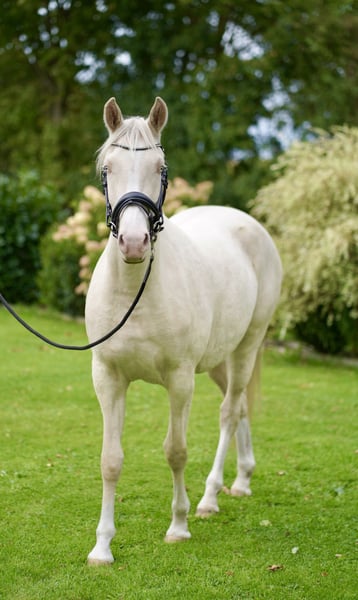 Zum Verkauf steht diese wunderschöne XL-Reitponystute. "Geisterpuppe" ist 2022 geboren und genießt seitdem eine fürsorgliche Aufzucht in einem familiären Pferdebetrieb. Während der Sommermonate stand sie 24/7 auf der Weide und in den Herbst/Wintermonaten steht sie im Stall mit täglichem Paddockgang. Sie war stets an der Hand und seit Sommer diesen Jahres wird sie regelmäßig gearbeitet (Bodenarbeit, Putzen, Führen in der Reithalle sowie auf dem Außenplatz). Die Stute ist sehr freundlich, aufgeschlossen und unkompliziert im täglichen handling. Sie kennt landwirtschaftliche Maschinen, Hunde, Kinder, Reithalle und Außenplatz. Wir haben "Geisterpuppe" schonend und mit viel Zeit auf das anreiten vorbereitet. Aktuell reite ich sie an der Longe. Dabei zeigt sie sich stets entspannt, umsichtig und arbeitsbereit. Aufgrund ihrer hervorragenden Abstammung eignet sich diese Stute auch ideal für die Zucht. Aus persönlichen Gründen müssen wir uns leider von dieser tollen Stute trennen. Wir suchen für sie ein 5*-Zuhause in dem sie eine vielfältige Ausbildung genießen kann. "Geisterpuppe" würde sich auch ideal für ein Mutter-Tochter-Gespann eignen. Röntgenbilder aus 10/25 sind vorhanden. Nach Absprache ist es möglich passendes Zubehör für "Geisterpuppe" mitzubekommen (Regen-& Winterdecken, Fliegendecke, Gamaschen, Sattel, Trense inkl. Gebiss). Für Rückfragen oder zur Vereinbarung eines Termines melden Sie sich gern unter der Nummer: 0173 8841071 oder 0175 6601860.