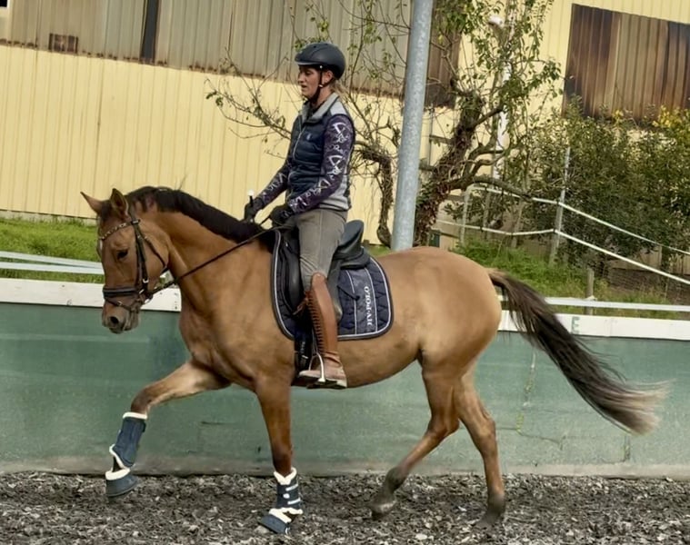 Biete 3jährige Dt. Reitpony Falbstute v. Dimension AT x Champion de Luxe zum Verkauf. Mit bester Genetik ausgestattet zeigt sie sich schon sehr ausbalanciert unter dem Reiter und lässt sich brav in allen GGA reiten. Raumgreifende GGA und ein ruhiger und selbstbewusster Charakter machen den Weg ins große Viereck bestimmt leicht. Ihr Halbbruder Lilienhofs Donelli ist siegreich bis Kl. S. Sie lässt sich unkompliziert verladen, geht alleine ins Gelände, kennt Halle und Außenplatz. Sehr menschenbezogen und verschmust sowie verträglich in der Herde. Mit derzeit 152 cm Stockmaß perfekt auch für Erwachsene. Auf Grund des Alters kein Anfänger- oder Kinderpony! Durch ihren sanften Charakter jedoch auch jetzt schon fürs „Mitreiten“ von Kindern an der Hand oder Longe geeignet. Große AKU (Röntgenbilder inkl. Rücken) ohne Befunde bereits vorhanden. Weitere Videos auf Anfrage.