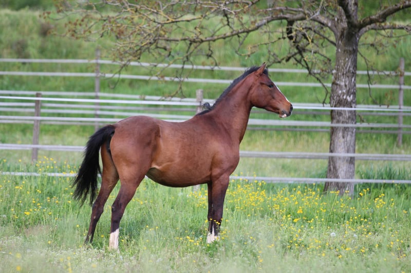 Very athletic bay filly with expressive gait and a lot of potential. Very interesting for working equitation! The sire is Diamante Anjo, an Atzeca Horse stallion (Lusitano x Quarter Horse) with a lot of charisma and intelligence. The dam is Nala, a German riding pony mare with a fantastic gait and a lot of go. Expected final dimension around 1.48-1.53m. Born on 21.03.2023. The foal is weaned and regularly dewormed. With equine passport incl. breeding certificate from the ZSSE (European Western Horse)