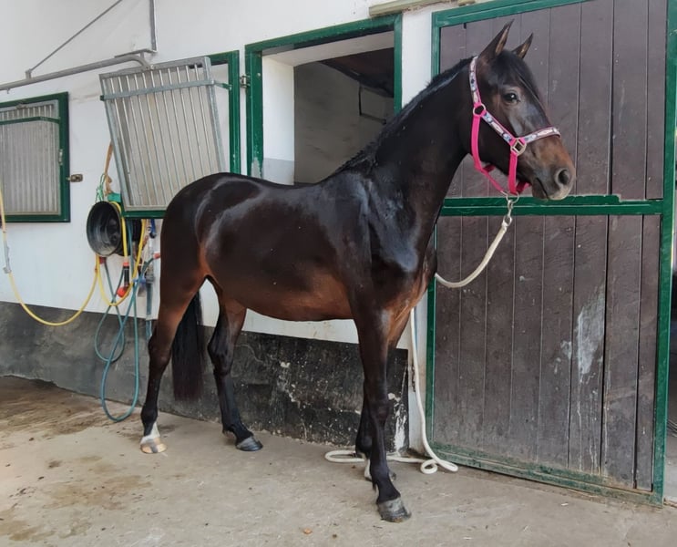 Miss Marpel es una yegua de pony alemán de 3 años, típica, con un cuerpo compacto y un carácter equilibrado. Actualmente mide 144 cm y posee tres muy buenos aires básicos. No solo destaca por su apariencia, sino sobre todo por su carácter. Miss Marpel es siempre amigable, fuerte de nervios y curiosa. En el trato diario, es muy dulce, sencilla, clara de mente y absolutamente amigable con los niños. Está acostumbrada a ser cepillada, a levantar los cuatro cascos y a trabajar en el suelo. Actualmente, Miss Marpel está siendo introducida de manera suave al trabajo en la cuerda. Aprende muy rápido, es trabajadora y relajada. Su gran pasión es el salto. Ningún cavaletti es demasiado alto para ella. Por lo tanto, es ideal para el deporte de salto y la doma de campo. Posee el coraje y la capacidad necesarios. Miss Marpel proviene del semental de concurso MC Fly High D (Mr. Hale Bob x Principal's Ass) y de nuestra yegua del libro principal Holly Go Lightly (Henry x Balthasar). Su media hermana Arika (criada por nosotros y que se puede encontrar en Rimondo bajo Arika 9) es uno de los ponis más exitosos en NRW. Desafortunadamente, Miss Marpel desarrolló un eczema de verano esta primavera y, por lo tanto, se vende por debajo de su valor. Si está interesado, estaré encantado de recibir una llamada o un mensaje. Con gusto dedicaré tiempo a una conversación o a una presentación individual en el lugar. El primer video es actual. El segundo video es de finales de septiembre de 2024.