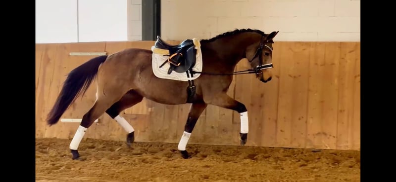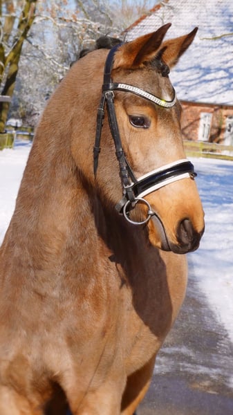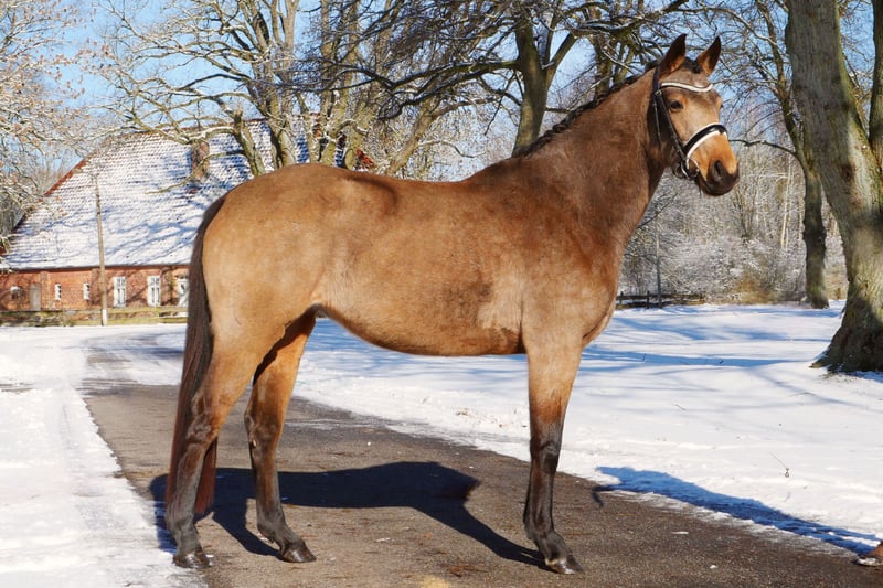 Zum Verkauf steht eine wunderschöne Pony-Stute im XXL-Format mit einem Stockmaß von 152 cm. Sie besticht durch ihre traumhafte Buckskin-Farbe und ihr liebenswertes, freundliches Wesen. Aktuell steckt sie noch im Winterfell - darunter verbirgt sich eine echte Schönheit mit Ausstrahlung und Charme. Sie kennt die Grundlagen im Umgang, Ist brav und unkompliziert im täglichen Handling Geht zuverlässig in der Halle sowie auf dem Außenplatz motiviert und bereit, weiter gefördert zu werden Ein vielversprechendes Talent zum sportlichen Reitpony. Mit weiterer Ausbildung entwickelt sie sich sicher zu einem tollen Partner für ambitionierte Reiter. Frisch getüvt (tierärztlich untersucht) Ein Pony mit Herz, Format und Perspektive - ideal für Reiter, die ein charmantes Nachwuchspony mit Potenzial suchen. Abstammung: Rivers Dancing AS x Santano x Sandro Hit x Jazz Weitere Informationen gerne auf Anfrage.
