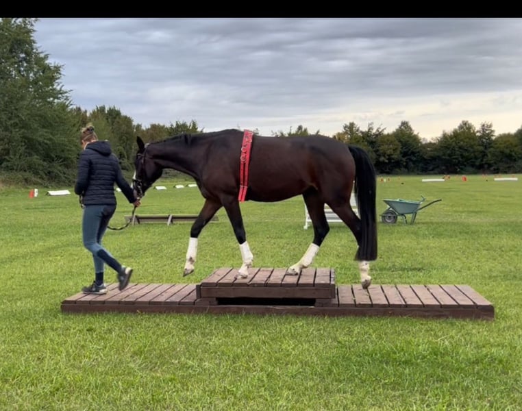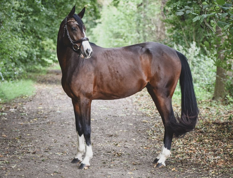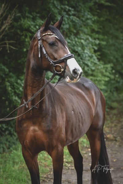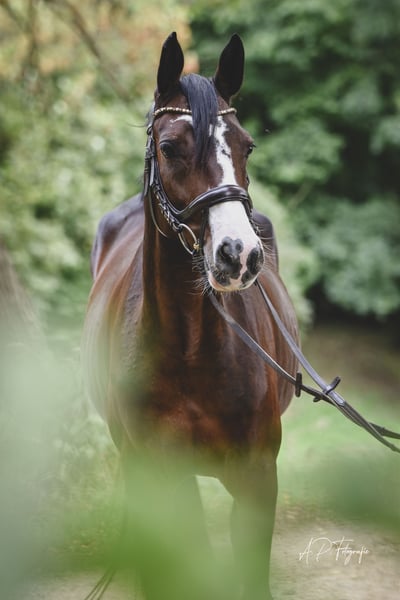 Monty, a 4-year-old pony mare standing approximately 1.48m tall with a character made of gold, is looking for a loving family with a 5* home. Monty was awarded as a foal, started under saddle at 3 years old, and then returned to the pasture. At 4 years old, she was introduced to light work in the first half of the year and has learned various things with us over the past few weeks. She is a fantastic all-rounder and is characterized by her lovable nature. She is still at the very beginning of her training, but she learns quickly, is not fearful, and wants to please. She confidently leads on trails and remains unbothered by cyclists, tractors, and cars. Therefore, I can also imagine her becoming a great driving pony. She is already familiar with some preparatory exercises and has impressed us with her calmness. Visually, she is a real eye-catcher. Monty has a healthy go, is hardworking, but is easy to handle. In dressage, she is at the level of dressage horses A and knows small jumps over cavaletti. Monty would certainly make a great family pony, provided she goes to a horse-experienced family where she can continue to be supported and trained. She has no vices and is really uncomplicated and fearless in handling. A veterinary examination including 12 X-rays from August 2025 is available upon request! Further videos can be sent after a phone call. We wish for her a loving home where she will win all hearts with her beautiful appearance and wonderful character.