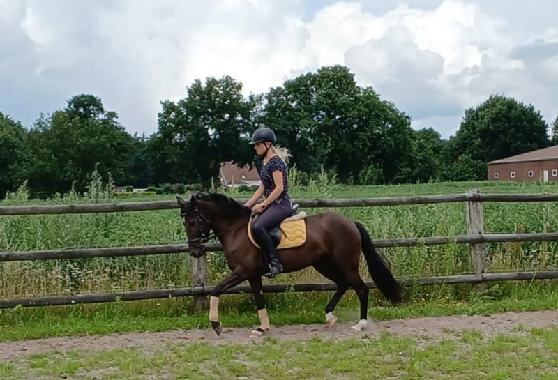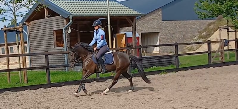 This pony mare has everything your heart desires. In handling, she is absolutely well-behaved and relaxed. Nevertheless, she has the necessary go under the rider. She has three above-average basic gaits and is always ready to perform and motivated. Appropriate for her age, she has been backed. She has already successfully completed her first small jumps under saddle as well. She enjoys this as well. She works great and brings joy to the daily work. These qualities are the result of a very successful breeding program. Several sons have already been approved from her mother. Additionally, the offspring from this line have been highly successful in mare shows and in sports. The father of this mare (Hulapalu ZV WE) has already placed multiple times internationally in M-level show jumping at the age of 7 and has also been successful in dressage. All in all, this pony is a real gem with its heart in the right place.