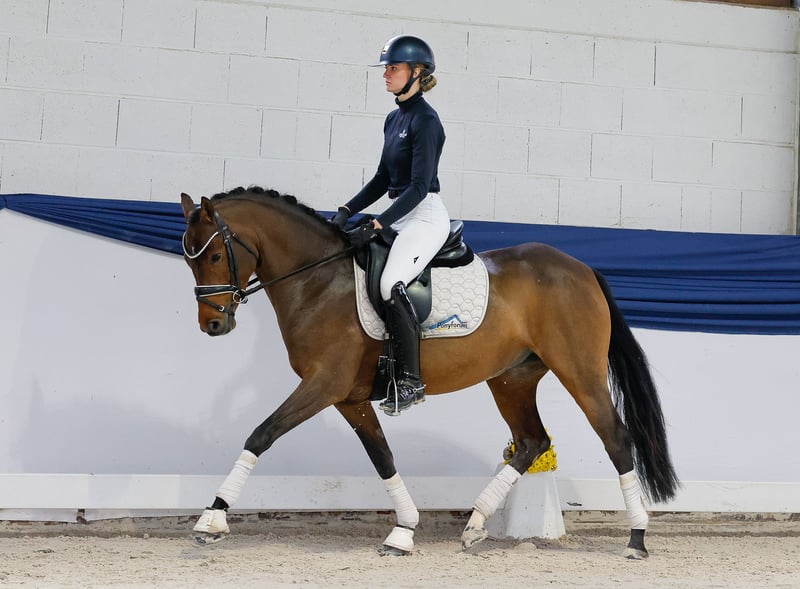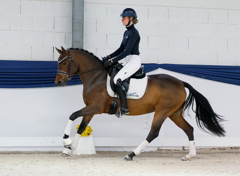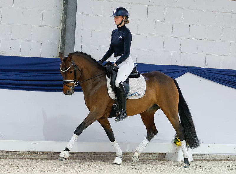 In our collection, you will find carefully selected riding ponies suitable for all requirements: training, breeding, and children’s ponies. Here is the link to the full collection: https://ponyforum.auction Four-year-old Carla Columna is a daughter of the Westphalian champion stallion D-Power AT. Her dam, St.Pr.St. Concordia, is already a multiple-time broodmare of licensed stallions. Earlier this year, we sold Carla Columna’s full sister, Conny, who won this year's mare performance test, was awarded the state premium, and placed in show jumping competitions! Carla Columna also shows excellent aptitude for dressage. She moves energetically and gracefully beneath the saddle, demonstrating outstanding self-carriage. She is still at the beginning of her training under saddle, but it is already clear that she is very brave and well-behaved. She simply needs more experience, but further training will be straightforward for this mare. She is cooperative and eager to work, having received a solid basic education from her breeders. Now, her ongoing training can continue seamlessly! Directly from the breeder.