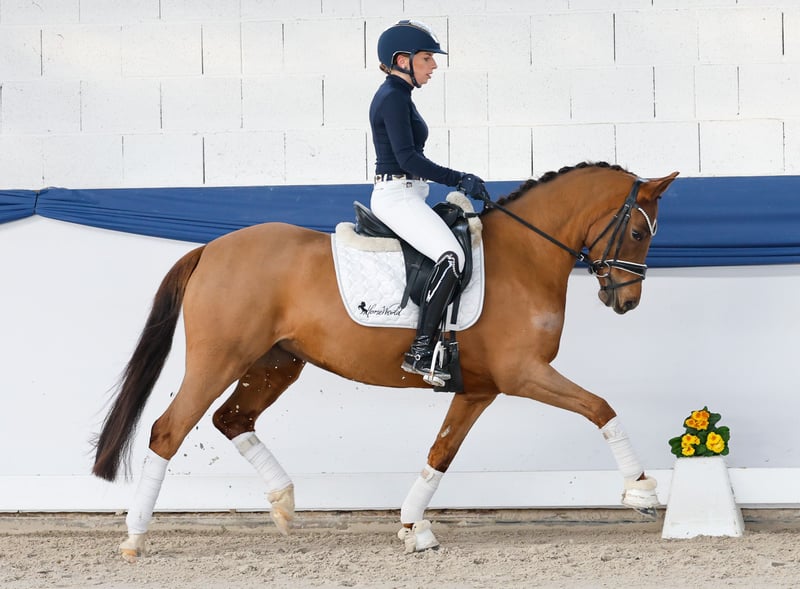 In unserer Kollektion stehen streng selektierte Reitponys f�r alle Anspr�che: Ausbildungs-, Zucht- und Kinderponys Hier gelangen Sie zur Gesamtkollektion: https://ponyforum.auction Erfolge: platziert in Reitpferdeprüfung, Stutenleistungsprüfung 8,13 in Münster-Handorf, Endringstute Elitestutenschau Münster-Handorf Mit der vierjährigen Dunkelfuchsstute Cover Girl steht ein beeindruckend ausdrucksstarkes Reitpony im Lot! Cover Girl ist ein Sportler durch und durch. Sie hat die benötigte Sporteinstellung und absolut positiven Go, den ein modernes Dressurpony einfach mitbringen muss. Sie liebt es, sich in Szene zu setzen und mit ihren dynamischen Bewegungsmöglichkeiten zu beeindrucken – ein echtes Cover Girl! Die Tochter des dreifachen Bundeschampions Cosmo Royale konnte im vergangenen Jahr dreijährig eine überragende Stutenleistungsprüfung mit einer Endnote von 8,13 absolvieren, zudem wurde sie auf der Elitestutenschau als Endringstute zur Staatsprämienstute gekürt. Ebenfalls konnte sie sich schon in einer Reitpferdeprüfung an 3. Stelle platzieren. Das perfekt im Maß stehende Nachwuchsdressurpony für ambitionierte Dressurreiter, die ein ausdrucksstarkes Pony suchen!
