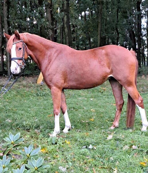 Verkaufe Deutsches Reitpony-Stute Zum Verkauf steht eine wunderschöne deutsche Reitpony-Stute, geboren im Jahr 2021. Sie präsentiert sich in einem attraktiven Fuchsfell und hat ein Stockmaß von 145 cm. Abstammend von Genises Bljunge-Nicoss-Kadett Die Stute ist schonend mit sehr viel Zeit und in Ruhe angeritten. Kennt erste Sprünge und ist im Gelände ebenfalls sicher. Sie ist freundlich im Umgang, lernwillig und eignet sich sowohl für ambitionierte Freizeitreiter als auch für den Turniersport. Tüv inklusive Rücken ohne Befund Bei Interesse oder für weitere Informationen stehe ich gerne zur Verfügung.