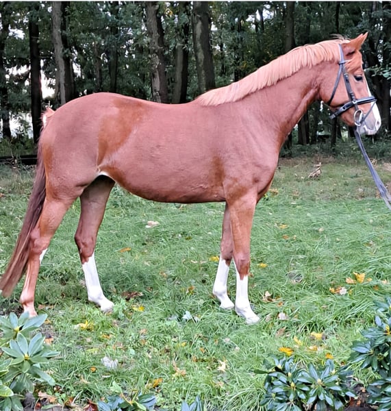 Sprzedam niemiecką klaczka konia rekreacyjnego Na sprzedaż piękna niemiecka klaczka konia rekreacyjnego, urodzona w 2021 roku. Prezentuje się w atrakcyjnym ognistym umaszczeniu i ma wzrost 145 cm w kłębie. Potomstwo od Genises Bljunge-Nicoss-Kadett Klaczka jest łagodnie i spokojnie wprowadzona do jazdy, została już wstępnie wytrenowana. Zna pierwsze skoki i jest pewna również w terenie. Jest przyjazna w obsłudze, chętna do nauki i nadaje się zarówno dla ambitnych jeźdźców rekreacyjnych, jak i do startów w konkursach. Badanie TUV w porządku, grzbiet bez zmian W razie zainteresowania lub dodatkowych pytań chętnie służę informacją.