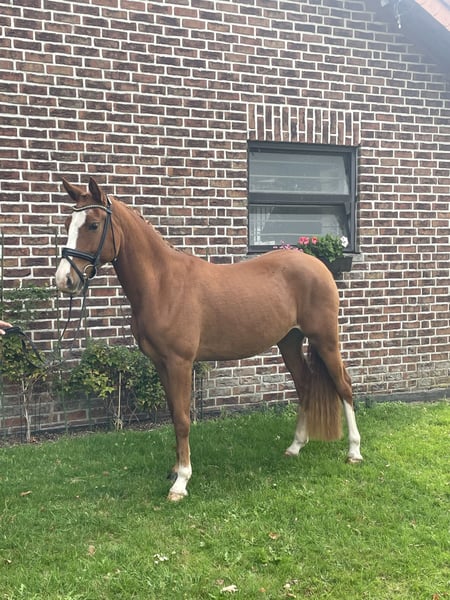 Zum Verkauf steht eine super liebe und ehrliche 4-jährige deutsche Reitponystute. Sie besticht durch ihren ausgeglichenen Charakter und ist absolut unerschrocken. Ob im Gelände oder auf dem Reitplatz macht sie immer ihren Job. Auch mit meiner 9 jährigen Nichte möchte sie nichts falsch machen und dreht absolut verlässlich ihre Runden. Ich bin mir sicher, dass sie viele Kinder- als auch Erwachsenenaugen zum Strahlen bringen wird. Sowohl als Kinderpony als auch zum selber ausbilden bestens geeignet. Wir haben sie selbst gezüchtet und trennen uns lediglich aufgrund von Zeitmangel von ihr. Aktuell 1.48cm m.E. D-Gold AT x FS Don’t Worry *2021 Dressurpferde A ausgebildet Videos mit und ohne Reiter als auch im Gelände oder auf dem Reitplatz mit mir und auch mit 9 jährigem Kind können bei ernsthaftem Interesse verschickt werden. Für weitere Fragen melden Sie sich gerne!