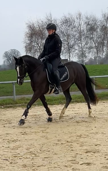 À vendre, notre jument poney de 3,5 ans. Un véritable eye-catcher : élégante, en robe noire smoky black, avec 4 chaudes blanches et une étoile. Issue d'une souche primée d'État ! Gold premium comme poulain, distinguée en tant que trois ans avec la prime de fédération. Elle est bien montable. Connaît la carrière, l’aire d’équitation, le terrain et les premiers sauts sous la selle. Elle possède un caractère excellent et reste calme dans diverses situations. Facile à charger, sage lors du ferrage. Elle aime le travail à la longe et est très motivée face à de nouvelles tâches. Actuellement ferrée à l’avant, vaccinée, vermifugée et radiographiée. Son équipement peut être acheté séparément, sur demande. Une rencontre est possible à tout moment sur rendez-vous.