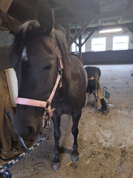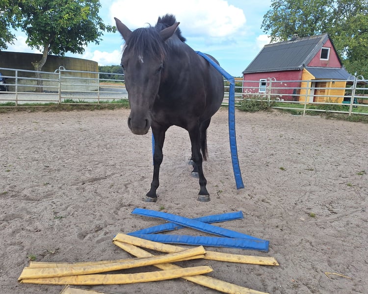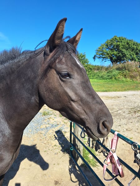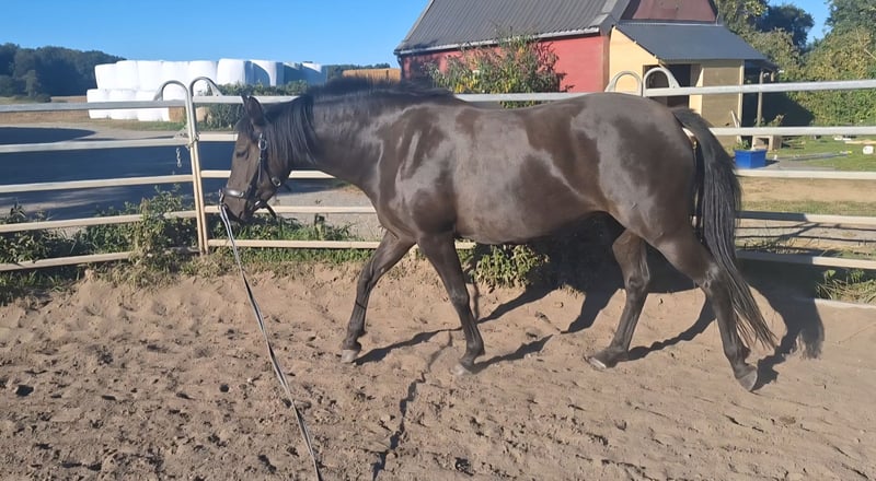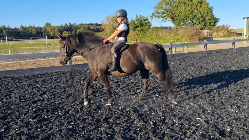 Schicke dunkelbraune Reitpony Stute aus der Zuchtlinie Zandheuvels Sunny Boy (und Downland Folklore). Sie hat ein gutes Gebäude, kräftiges Röhrbein und erhielt eine Fohlenprämie. Sie wurde als Jährling direkt vom Züchter von der Vorbesitzerin übernommen. Anfang des Jahres ging sie in den Beritt. Bodenarbeit, Spaziergänge, Reiten auf dem Platz und im Gelände erfolgt problemlos. Im Gelände ist sie gelassen und geht auch alleine ohne Anstalten vom Hof. Eine Eigenschaft, die sie vielleicht auch als Kutschpferd interessant macht. Ebenfalls könnte ich sie mir später als Pony für Mounted Games vorstellen. Sie hat einen starken Charakter, ist lernwillig und möchte beschäftigt werden. Landwirtschaftliche Maschinen, Hunde, Katzen, Hühner, etc. sind bekannt. Sie kennt Offenstall als auch Boxen, sowie gemischte und reine Herdenhaltung. Schmiede- und verladefromm. Leider habe ich für mich schnell feststellen müssen, dass ich doch kein Ponyreiter bin, sondern ein Kleinpferdtyp. Von daher sucht die Stute ein tolles neues zu Hause. Aus diesem Grund wurde sie bei mir nicht geritten, da ich aufgrunddessen kein entsprechendes Equipment gekauft habe. Sie müsste von daher neu angeschoben werden und Muskeln aufbauen. Eine aktuelle AKU aus August liegt deshalb ebenfalls vor. Bei Interesse und Fragen kontaktiert mich gerne.