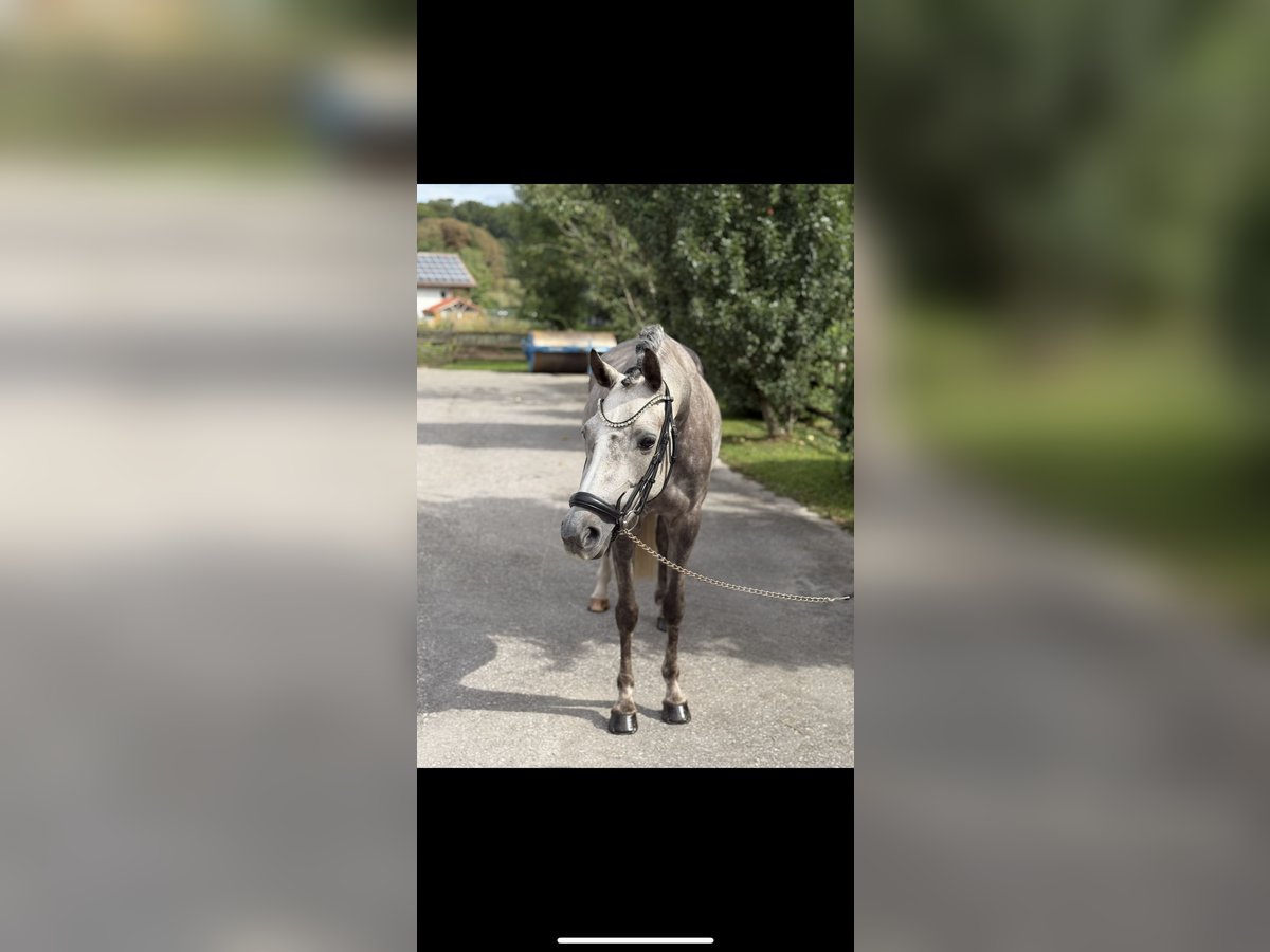 5-jährige Dressurpony-Stute (ca. 1,44m) mit viel Potenzial Zum Verkauf steht eine 5-jährige Pony-Stute mit guter Dressurveranlagung und viel Entwicklungspotenzial. Die Stute ist altersentsprechend angeritten und zeigt sich unter dem Sattel motiviert, lernwillig und mit ansprechender Grundqualität. Sie verfügt über einen guten Takt sowie eine aktive Hinterhand und lässt sich bei weiterer Förderung vielseitig ausbilden. Sie ist eine temperamentvolle, sensible Stute, die eine feine und ruhige Reiterhand benötigt. In der Arbeit zeigt sie bereits gute Ansätze in der Anlehnung. Im Umgang ist sie super brav, auch bei Schmied und Tierarzt. Verladefromm, eingetragen und eingemessen. Frisch geimpft und Zähne gemacht bekommen. Aufgrund ihres Alters und Temperaments kein Anfängerpony – geeignet für ambitionierte Reiter oder zur weiteren Ausbildung. Ein kleiner exterieurbedingter Makel (hinten leicht gefesselt) ist vorhanden, aktuell ohne bekannte Einschränkung. 📍 Standort: 82266 💰 Preis: 9.000 € VB