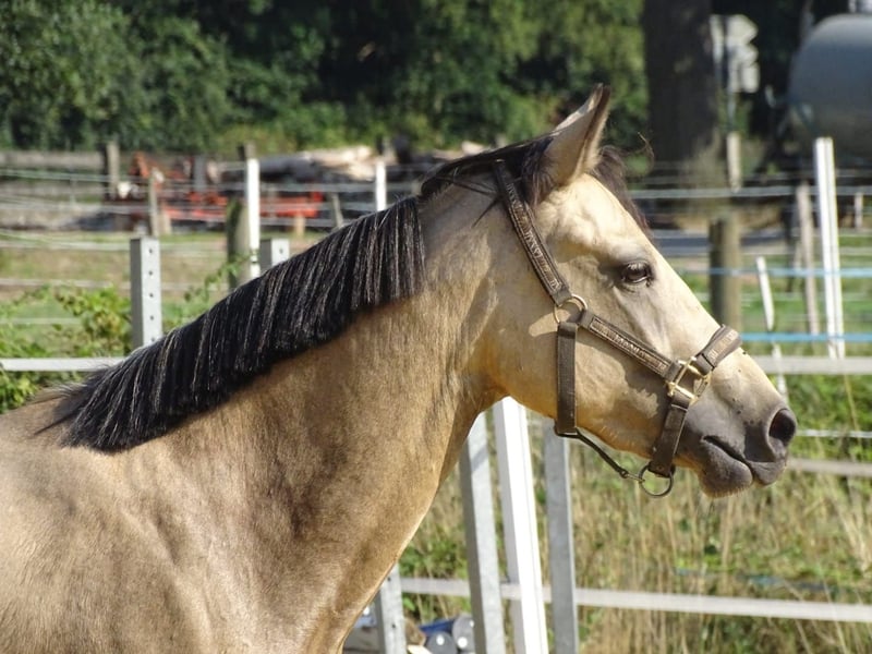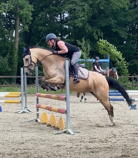 Wir verkaufen eine 5j. PONYSTUTE von D-Gold x FS Maracaibo. Falbe, 146 cm groß, bereits E Springen platziert, ebenfalls geeignet für Dressur oder Vielseitigkeit. Bei uns geboren und aufgewachsen. Anfragen gerne per WhatsApp 01732904292