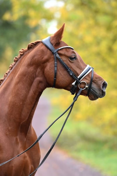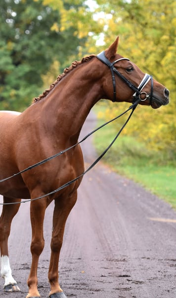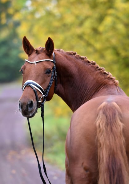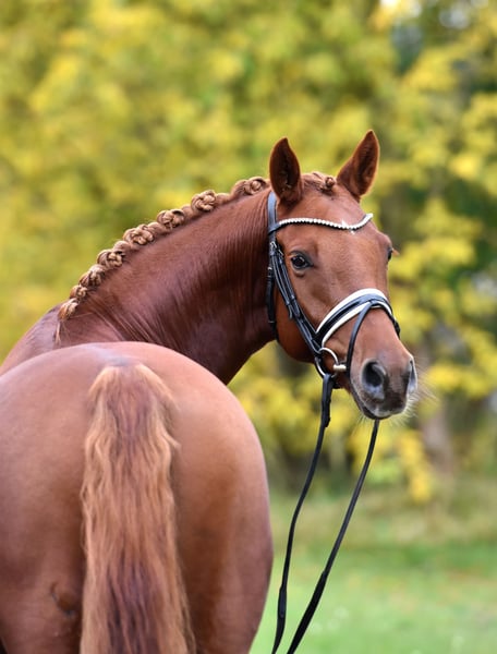 " Glitzer Gold" - nicht nur der Name dieser tollen Stute ist bezaubernd! Die 5 jährige Tochter des S platzierten Ponyhengstes " Glück auf A" kommt direkt vom Züchter und wurde toll aufgezogen und schonend auf Dressurpferde A Niveau ausgebildet. Reiten in Halle, Platz und Gelände - kein Problem für Glitzer! Sie überzeugt mit 3 gleichmäßig sehr guten Grundgangarten und schon guter Versammlungsbereitschaft- das ist eine zum Ausbilden auch für die spätere FEI Tour ! Super brav im Umgang als auch unter dem Sattel. Glitzer wird zeitnah auch noch mal Turnier vorgestellt! Sehr rittig, tolle Anlehnung und bereits recht abgeklärt in fremder Umgebung. Ein sehr guter TÜV inkl. Rücken liegt vor. Unkompliziert auch mit anderen Pferden, nicht stutig! Ansehen und verlieben !