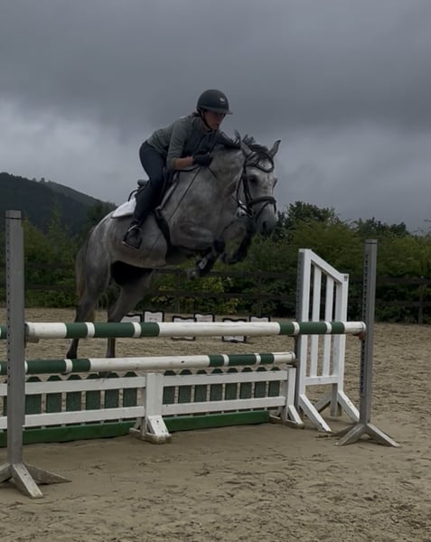 Bärbel is a 5-year-old pony mare born and raised on our farm. Her mother, a performance mare standing 1.60 m, was successful up to S* level and placed at S** during her active career. Bärbel’s sire, a licensed stallion standing 1.45 m, finished 4th in the final of the Bundeschampionat at age five, has won M-level show jumping competitions, and has competed in the German Championships and the "Preis der Besten." Bärbel is easy to ride and eager in her daily work. She has excellent reflexes over jumps and a superb technique. Her positive attitude towards jumping, combined with her remarkable talent, provides a great foundation for a future show jumping pony. She is not suitable for beginners or novice jumpers.