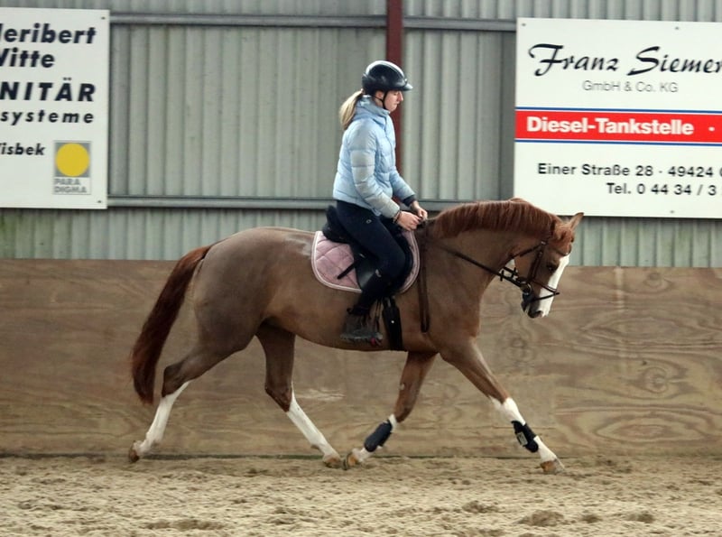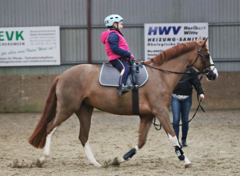 Verkaufe Deutsches Reitpony-Stute (Welsh B x Hannoveraner = Reitpony) Zum Verkauf steht eine wunderschöne deutsche Reitpony-Stute mit Top Abstammung für den Sportbereich, geboren im Jahr 2021. Sie besticht durch ihr elegantes Erscheinungsbild in Fuchsfärbung und hat ein Stockmaß von 156 cm. Die junge Dame ist bestens für den Dressursport geeignet und zeigt viel Talent sowie eine angenehme Grundhaltung. Charakterstark und freundlich. . Milka ist eine Stute mit Charm und freundliche Einstellung, sie eine Familie sucht wo sie ihre geduldige Art zur Geltung bringen darf. Lernwillig und arbeitsbereit, Milka hat keine Ambition zu flitzen, ist eher gemutlich unterwegs. Röntgenologisch untersucht jedoch ohne Befund, klinische Ankaufsuntersuchung wird zeitnah zur Übergabe neu durchgeführt. Milka ist zurzeit geschoren und unter Winterdecke. Sie ist freundlich, lernwillig und lässt sich gut reiten. Ideal Familienpony/Pferd genau richtig für eine Mutter und Kind / Kinder zu reiten. Milka ist von Kindern ab 8 Jahre geritten, die ist eine zuverlässige, genügsame Partnerin für den Dressurunterricht, Turniere oder allg Freizeitpartnerin die viel Freude schenken kann. Bei Interesse oder weiteren Fragen stehen wir gerne zur Verfügung. Nur seriöse Anfragen, Besichtigungen Samstagvormittag nach telefonischer Vereinbarung möglich. Videos sind vorhanden. Wir bitten um Verständnis, dass Videos werden nur nach telefinischer Kontaktaufnahme per whatsapp verschickt.