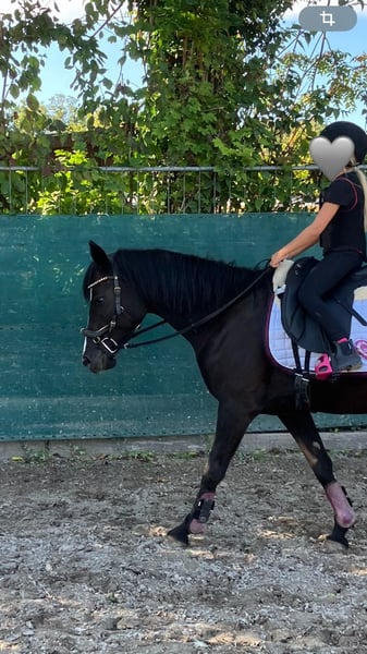 Schöne deutsche Reitponystute mit einmaliger ganz besonderer herzförmiger Blesse. Wir haben sie 2025 über das Ponyforum gekauft. AKU von DEZ 2024 inkl Röntgenbilder ohne Befund liegt vor, es kann gerne auf eigene Kosten eine AKU durchgeführt werden. Das Pony hat ein ganz liebes zutrauliches Wesen und wurde im letzten Jahr hauptsächlich von Kindern geritten, auch von Anfängern an der Longe wo sie stets lieb ist. Wir gehen auch regelmäßig spazieren, Traktoren, Kinderwagen, Roller, Baustellen etc. sind kein Problem für sie. Da wir leider großes Pech mit einer Sattlermeisterin hatten, wurde das Pony zu lange mit einem unpassenden Sattel geritten wodurch sich Rückenschmerzen entwickelt haben, verbunden mit einem Abbau von Muskeln im Rumpfträger-und Rückenbereich. Außerdem haben sich dadurch Muskelverspannungen gebildet, die momentan bereits durch Physio und Osteopathie behandelt werden. Es ist wichtig, dass dies verantwortungsvoll wieder aufgebaut wird, was sicherlich Geduld erfordert um das Pony nicht zu überfordern. Deswegen wird sie unter Ihrem eigentlichen Wert verkauft. Wichtig für sie ist auch die Offenstallhaltung mit anderen Pferden. Das Potential bringt sie mit, ein tolles Kinderpony zu werden und sie deckt auch Erwachsene bis ca 165 cm / 55 kg sehr gut ab. Da wir eben nun keinen Sattel haben, ist probereiten nur bedingt möglich (Kinder können auf dem Westernpad reiten). Sie läuft problemlos barhuf und nicht fühlig im Gelände, Hufpflegerin ist kein Problem, sie macht eigentlich alles mit. Bei neuen Sachen ist sie neugierig statt nervös. Sie ist turnierkonform geimpft(Herpes und Influenza) und regelmäßig entwurmt. Diese liebe 6jährige Stute ist ein tolles Pony, mit welchem sich Kinder zusammen entwickeln können. Wichtig ist, dass eine verantwortungsvolle Person mit viel Pferdeerfahrung dies begleitet, dann steht einer großen Pferdefreundschaft nichts mehr im Weg! Wir verkaufen sie, da wir für ihr erforderliches Training nicht genug Zeit haben um dem Pony gerecht zu werden. Außerdem wird sich unsere familiäre Situation ändern so dass wir voraussichtlich umziehen müssen und das Pony dorthin nicht mitnehmen können. Reitvideos sind vorhanden mit Kindern. Bei Interesse/weiteren Fragen einfach melden.
