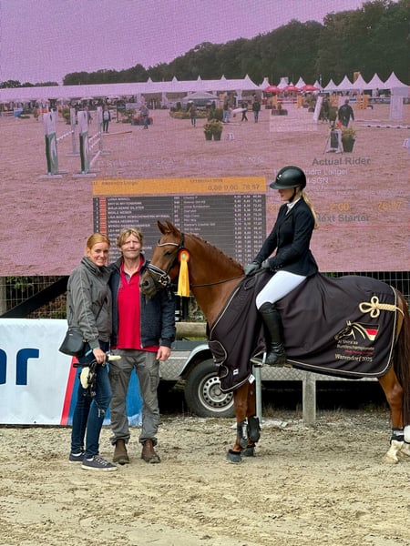 In onze collectie vindt u streng geselecteerde springponys voor alle eisen: opleidings-, fok- en kinderponys. Hier gaat u naar de volledige collectie: https://ponyforum.auction Resultaten: Finaliste op het Bundeschampionat voor vijfjarige springponys, winnaar van de kwalificatiewedstrijd voor het Bundeschampionat in Warendorf 2025, succesvol en geplaatst in springpaardenwedstrijden, geplaatst in springwedstrijden klasse A 90 cm en E 85 cm. Onze topaanbieding voor toegewijde springruiters in parcours en cross: Chucky-P! De vijfjarige merrie won in september tijdens het Bundeschampionat voor vijfjarige springponys de kwalificatiewedstrijd en kwalificeerde zich voor de finale – daarmee behoort ze tot de vijf beste vijfjarige springponys van het land! Chucky-P kwalificeerde zich voor het Bundeschampionat in Olfen, een van de sterkst bezette kwalificaties in Duitsland. Ze liet hier het volledige startveld achter zich en won deze wedstrijd! Chucky-P heeft ook al wedstrijdervaringen opgedaan onder jonge ruiters; ze is een enthousiaste en sportieve merrie. Stilstand is voor haar geen optie, met veel vermogen en moed compenseert ze zelfs zelfverliezen van de ruiter onbaatzuchtig. Ze heeft ook al eerste successen behaald in cross-country wedstrijden; haar uitstekende galop en haar bereidheid tot presteren zijn hier voorbeeldig.