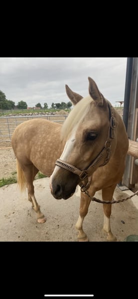 For sale due to a change in my riding plans: my 7-year-old German Riding Pony mare, Goldmarie. She is a very sensitive and intuitive mare, but still requires consistency and structure. I’ve had her since she was a foal; she has always been kept in an open stable, is very social, and needs turnout. She tolerates box stall living, but quickly becomes impatient and starts knocking at the door, etc. 24-hour hay is unfortunately not ideal for her, but I cannot offer anything else, and as a result, she has always been quite overweight with me. She also needs limited grazing, typical of a pony. She has been gently backed and is very responsive to aids, but over the past year, most of her work has been ground work or ridden out. She is capable of going alone or in a group into the terrain, but can be somewhat spooky. Overall, she is not suitable for beginners or children; you should be confident in the saddle and experienced with young horses. In 2024, she suffered from placentitis, which unfortunately resulted in a stillbirth. She was treated and flushed afterward, but we did not breed her again. Whether she could be used for breeding should be carefully evaluated beforehand. She is shod in front because our terrain is very stony and includes many roads. She behaves impeccably with farrier and veterinarian. Trailer loading is generally no problem. I am selling Goldi only because she is too valuable to stand around doing nothing and is getting too fat. Perhaps she will find someone who appreciates her and works with her properly. Please no price inquiries only; due to winter, trial rides are limited at the moment. She will be sold with all accessories. Feel free to contact me via WhatsApp; I am available by phone only after 3 p.m.