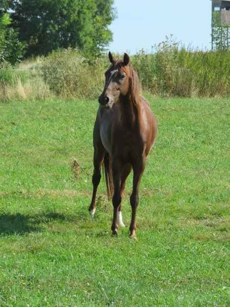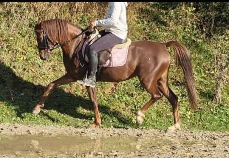 For sale: Beautiful German Riding Pony mare with an exceptional pedigree. Born in 2019, this mare by Dance Star measures 142 cm in height. She has three beautiful basic gaits, an expressive personality, and is loving and very trusting. She was lightly backed in summer 2024 and then went into a winter break. Since April, she has been gradually re-initiated under saddle and already shows herself to be confident, movement-rich, and relaxed in the saddle. She is very well-behaved, and it’s as if she never had a break. This mare is also valuable for breeders, as her outstanding lineage combines major riding pony lines. Her fine head and cool demeanor come from the full-blood line of Temptation. Her excellent gait is inherited from Golden Dancer. Price will increase with her level of training.