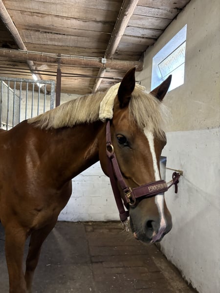 Hello everyone, offered is a 7-year-old German Riding Pony mare (145 cm, dark chestnut), with full papers and up-to-date vaccinations. Mia impresses primarily with her exceptional character and her joy in work, as well as her fearless attitude in all situations. She performs well in both dressage and jumping, showing good enthusiasm. Due to time constraints, she is only basic trained but masters all fundamental gaits well. In jumping, she also demonstrates solid rounds, occasionally even on A level. She is a pony that should find her place in competitive sport, as she shows great potential with proper support. In handling, she is always open-minded and fearless, whether going out alone, hacking, or riding without a saddle – all of this is no problem for her. Mia is an absolutely reliable horse in all situations, which truly characterizes her. She is also farrier and loading friendly and shows no bad habits with the vet or similar. In daily life, she is very people-oriented and enjoys attention 100%. Currently, she spends her days outside from morning to evening and stays in her box at night, which helps her relax best. In the herd, she is rather lower in the ranking. In handling, she shows no bad habits and is always easy to handle under saddle. Aside from a few small bucks when startled, she has never exhibited other bad behaviors. She has experience on different arenas and in unfamiliar environments, always behaving perfectly. Despite her wonderful character, she is not a pony for beginners and should go to someone who enjoys further training and development, as she can sometimes be a spirited ride. She shows great joy especially in jumping and hacking, which is why I see her thriving in all three disciplines. Additionally, she gave birth to a fantastic stallion foal three years ago, making her also interesting for breeding. She is not a last-minute sale!! This decision is very difficult for me, and she will only be sold if it is a perfect match. Due to my current training commitments, I simply do not have the time to further develop her. She deserves someone who has 100% time and love for this wonderful pony and who wants to continue her sportier training, as she definitely has a lot of potential that should be nurtured! A pre-purchase exam can be done at the buyer’s expense. If genuinely interested, please contact me at 017662804295 (phone/WhatsApp). A test ride costs 20 euros, which will be deducted from the purchase price if she is bought.