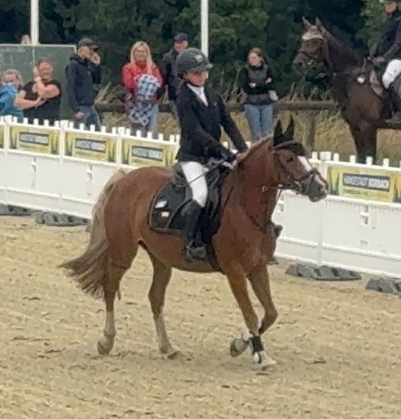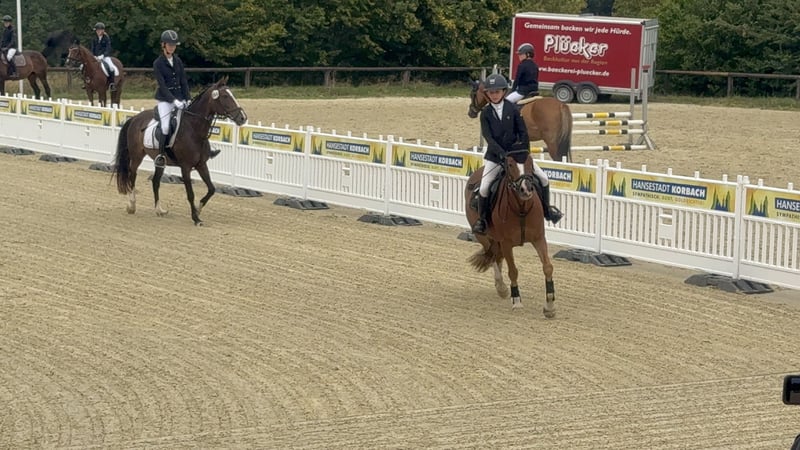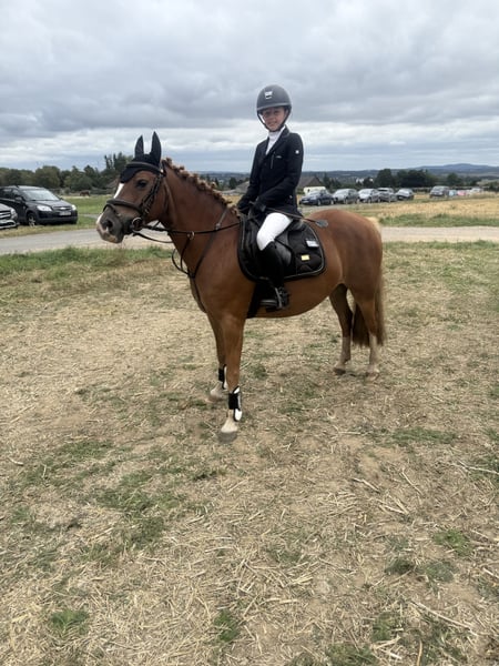 Zum Verkauf steht eine 8-jährige Fuchsstute mit einem Stockmaß von ca. 1,40 m. Sie wird derzeit von einem 10-jährigen Mädchen geritten, wie auf den Bildern und Videos zu sehen ist. Die Stute ist lieb im Umgang und zuverlässig unter dem Sattel. Sie wird regelmäßig auf dem Reitplatz, in der Halle und im Gelände geritten und geht auch alleine von der Gruppe weg. Sie ist geländesicher, geht über Hindernisse, durch Wasser und wurde bereits auf Turnieren vorgestellt. Im Umgang zeigt sie sich stets freundlich, ist brav beim Schmied und lässt sich problemlos verladen. In der Haltung ist sie unkompliziert. Sie steht aktuell im Offenstall in einer gemischten Gruppe, kennt aber auch Boxenhaltung und kommt in beiden Haltungsformen gut zurecht. Eine liebe, vielseitige Stute, ideal für Kinder oder leichtere Reiter, die ein verlässliches Freizeitpony suchen. Eine aktuelle Ankaufsuntersuchung ohne Befunde liegt vor. Für weitere Informationen gerne anrufen 0171 9550003