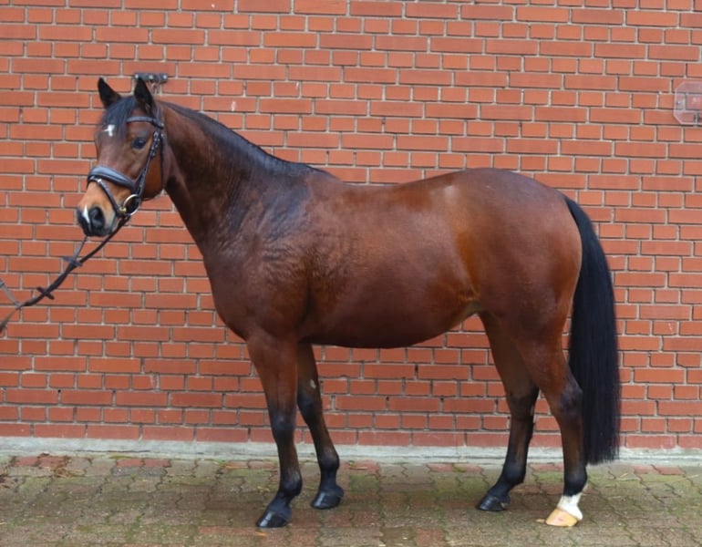 Due to a reduction in herd size, we are offering our 143 cm German Riding Pony mare, "Stella," to a caring new owner. Stella is an 8-year-old mare with a lovely pony type and excellent basic gaits. She lives with us in a small herd and has been ridden recreationally. Stella is a stunning, talented, and athletic riding pony mare with a lot of work ethic and willingness to perform, now seeking the right partner. She is trained up to E-level in dressage and show jumping, impressing with an effortless, secure jump in her jumping efforts. She has not yet been shown in competitions. Stella demonstrates a strong desire to learn and is eager to show what she can do. She is very motivated, thinks along, and provides a pleasant riding experience. Due to her temperament and occasional mareishness, we are looking for an experienced rider who enjoys further developing a talented pony. Stella is vaccinated against tetanus, dewormed, stands well for the farrier, and loads reliably. She is only sold to a good home and not to riding schools or commercial operations. Accessories such as saddle and bridle can be purchased separately. The price is negotiable for the perfect home!