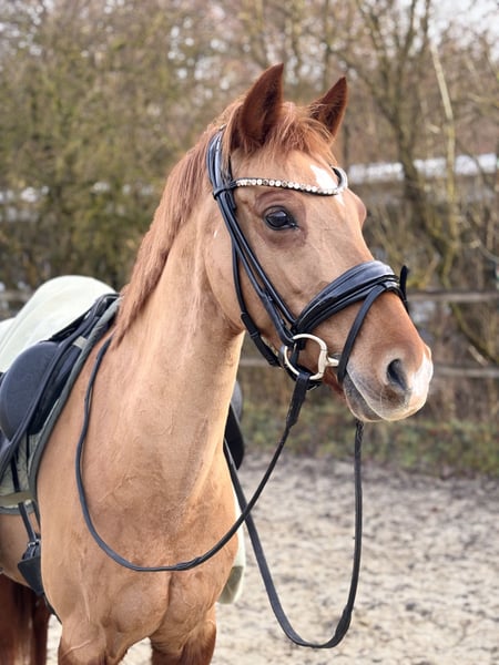 Diese bildschöne Reitponystute aus 2017 begeistert mit ihrem freundlichen Wesen und guten Grundgangarten, wobei der Trab besonders hervorzuheben ist. Daisy bringt alles mit, was ein Freizeitpferd können sollte: - geländesicher (als Handpferd, alleine und zu zweit) - verladefromm (alleine, zu zweit, auf dem Anhänger warten, alleine verladen- mit Daisy kein Problem!) - artig bei Schmied und Tierarzt - eher rangniedrig (Haltungsform aktuell Laufbox (nachts) und Paddock/Weide (in der Herde mit 4 anderen Stuten) - barhuf - gesund (guter Röntgentüv 3 jährig) - kleine Sprünge unterm Reiter, gutes Freispringen (nicht weiter gefördert) - Turniererfahrung (Platzierung bis RL in 2025) Daisy geht liebend gern ins Gelände und lässt sich geduldig betüddeln. Ein Mutter-Tochter-Gespann oder eine gut reitende Jugendliche, bei der Daisy im Mittelpunkt steht, könnte sehr gut passen. Turnierreiten sollte nicht im Vordergrund stehen- sie hat daran wenig Freude und ist eher ein zurückhaltender Typ. Auf Wunsch kann Daisys hochwertiges Equipment (u.a. ein neuwertiger Passier Evo d) mit erworben werden. Platz vor Preis. Telefonische Anfragen erst ab 15:30Uhr.