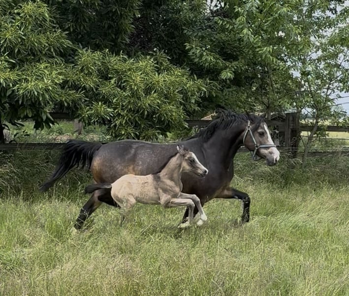 **Verkaufsanzeige: Deutsches Reitpony Stute** Zum Verkauf steht unsere bezaubernde Deutsche Reitpony Stute, geboren im Jahr 2016. Sie hat ein wunderschönes, auffälliges Fell und hat ein Stockmaß von ca 146 cm. Diese Stute stammt ab von Diamond Touch NRW aus einer Nutrix Mutter. In der Vergangenheit ist sie in Basisprüfungen und Reitabzeichen brav und zuverlässig mit Kindern unterwegs gewesen. Ihr freundliches Wesen und ihre Neugier machen sie zu einer idealen Partnerin. Bei uns ist sie seid über einem Jahr aufgrund ihrer Trächtigkeit nicht geritten. Ihr erstes Fohlen von Cosmopolitan NRW ist ein echter Hingucker , und wird in den nächsten Wochen abgesetzt. Sie ist erneut tragend für 5/26 vom Topvererber Cosmopolitan NRW. Bei Interesse oder weiteren Fragen stehe ich Ihnen gerne zur Verfügung.