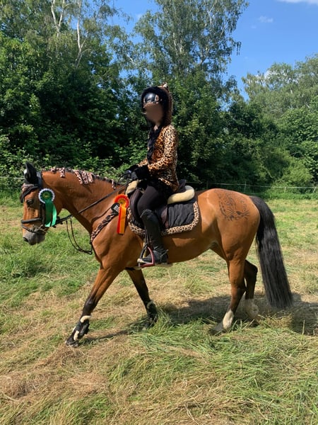 Unfortunately, our daughter’s pony days are coming to an end much too soon. With a heavy heart, we are therefore offering our mare Milli for sale. Milli is a sport pony that can always be relied upon in the show ring. She consistently takes her rider confidently to the other side and never becomes hot or headstrong. She is always manageable and a true safe bet. Thanks to her pedigree and training, she is also of interest for dressage and eventing (although our daughter’s heart primarily beats for jumping). She has also been consistently trained in dressage. In jumping, Milli has extensive competition experience, achieving success up to A** level with several 8s, and shows clear potential for more in training. However, she also requires a rider who can ride her with finesse. For this reason, we can very well imagine her with a smaller adult rider who is interested in jumping or a parent-child pair. Milli is uncomplicated in handling. She reliably loads onto the trailer, behaves well at the blacksmith, and is comfortable riding alone in the terrain. Further details are available in a personal conversation or during a trial ride. To protect Milli from riding tourism, we charge €30 for a trial ride, which will be deducted from the purchase price if you decide to buy her.