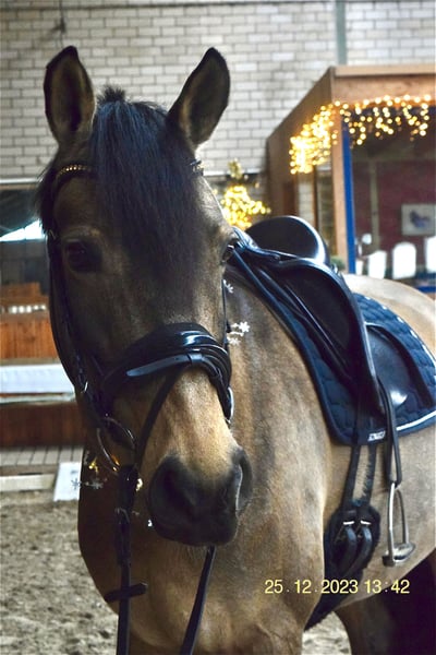 Met pijn in ons hart verkopen wij onze geliefde Secret. Secret is een 9-jarige Duitse rijpony merrie en overtuigt met haar rijdbaarheid en haar onverslaanbare karakter. Op wedstrijden toont ze zich altijd zeer zenuwsterk en geeft ze de ruiter een veilig gevoel. Ook in de dagelijkse omgang vertoont Secret nooit ongewenst gedrag en is ze ook zeer mensgericht. Buitenritten in een groep of alleen beheerst ze moeiteloos. In de training worden de oefeningen van klasse M nog "fijn geslepen", maar ook oefeningen van klasse S, zoals galoppirouettes, geeft ze al aan. Op wedstrijden heeft ze in klasse L plaatsingen behaald met waarderingen tot 7,8. Secret is een echt hartsvriend en we wensen voor haar dat ze een 5⭐️ thuis vindt, waar ze naast de sport ook gewoon paard mag zijn. Ook hier geldt: Geen noodverkoop, plek boven prijs! Video's kunnen bij serieuze interesse worden toegestuurd.