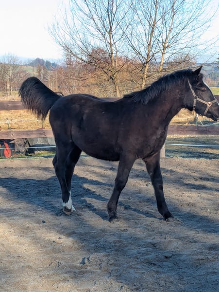 Zum Verkauf steht ein vielversprechendes deutsches Reitpony-Hengst – perfekt zum decken und als späteres Reitpferd Dieser Rappe überzeugt nicht nur durch seine tolle Farbe sondern auch durch sein gutes Potential. Dieser wunderschöne Rapphengst wurde im Jahr 2025 (12.04.2025) geboren und überzeugt durch sein charmantes Erscheinungsbild sowie sein freundliches Wesen. Mit einem Stockmaß von derzeit ca. 130 cm und seinem Alter von 9 Monate hat er einen sehr schönen, ausgeprägten Körperbau. Der Hengst ist geimpft und regelmäßig entwurmt, gesund und gut sozialisiert. Seine elegante Erscheinung und sein angenehmes Temperament machen ihn zu einem tollen Begleiter. Bei Interesse kann die Mutter mit erworben werden! Siehe Fotos, auf dem letzten Bild ist der Vater zu sehen! Bei Interesse oder weiteren Fragen stehe ich Ihnen gerne zur Verfügung. Decken möglich – bei Interesse bitte gesondert anfragen.