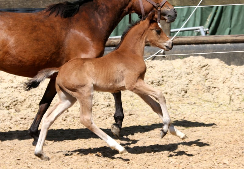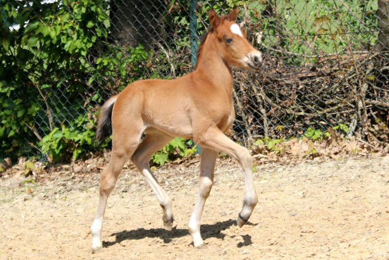 Dieses Hengstfohlen weiß mit dem ersten Augenaufschlag zu begeistern. Bildschön, mit herrlichem Gesicht und ganz viel Antritt. Vater Quarterbacks Junior zeigt neben einem einzigartigen Bewegungsablauf auch ein äußerst vermögendes Springen. Diese Stärken sicherten ihm den Titel des “Bundesiegers der vielseitig veranlagten Ponys” zur FN-Bundeshengstschau der Sportponys 2015 in Berlin. In seinem 30-Tage-Test siegte er mit einer Gesamtnote von 8,53 überlegen. Auf der Bundesschau der IG Welsh errang Quaterback‘s Junior den Titel „Bundessiegerhengst“. Seine Turnierkarriere verlief erfolgreich und mit vielen Höhepunkten. Im Jahr 2014 qualifizierte er sich unter seiner Reiterin Laura Strehmel zum Bundeschampionat der 5-jährigen Springponys und belegte dort in der Einlaufprüfung den 5. Platz. Helena Dietrich platzierte ihn in Dressurprüfungen der Klasse L und nahm an den Landesmeisterschaften der Dressur teil. Mit seinen Fohlenjahrgängen setzte er sich an die Spitze des Verbandes Brandenburg-Anhalt und kann auf erfolgreiche Nachzucht in ganz Deutschland verweisen. Quaterback‘s Junior stellt bereits 5 gekörte Söhne und 12 Staatsprämienstuten. Die eigene, ihn auszeichnende sportliche Vielseitigkeit vererbt Quaterback´s Junior mit hoher Sicherheit. Sie brachte ihm Rang 15 unter Deutschland Top- Hengsten mit Turnierponynachkommen ein. Regelmäßig sind seine Nachkommen erfolgreich beim Bundeschampionat in Warendorf. Video auf Anfrage. Im Züchterauftrag. Aufzuchtsplatz kann gestellt werden.