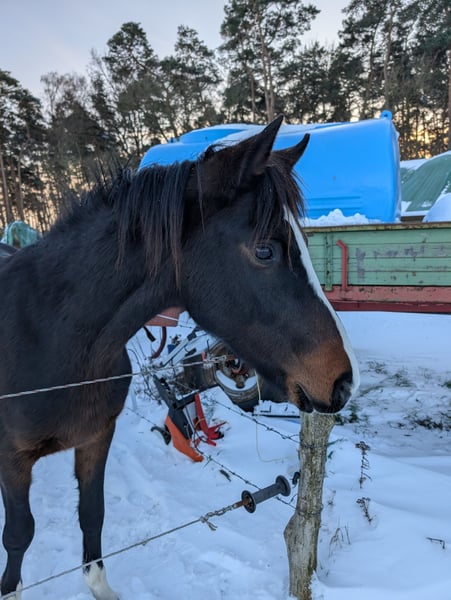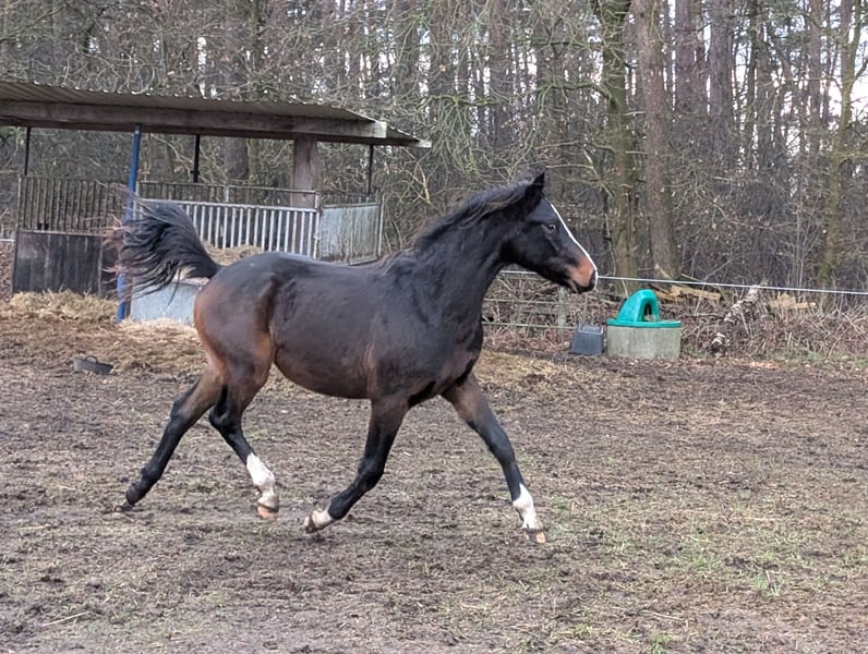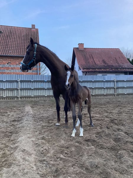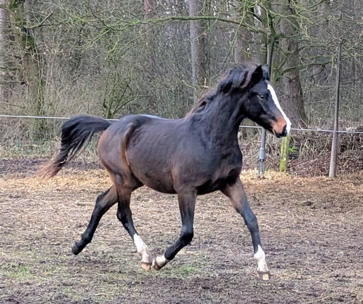 This beautiful, truly well-behaved and energetic riding pony stallion is looking for a new home, albeit with a heavy heart. Born in March 2024, he is a dream pony both in type and character. He resembles a dog more than a pony. He comes with full papers and was awarded premium foal status. His sire is the stunning stallion Nablissimo, and his grandsire is New Classico. Both leave nothing to be desired (photos attached). His dam was a wonderful mare in both temperament and overall character. He is herd-safe, shoe and loading trained, traffic-proof, child-friendly, familiar with dogs, and halter-broken. He knows the entire foal’s ABC! He will stay small and is already a total cuddle bug. Vaccinated Wormed Presented to the farrier If you are looking for a pony with promising breeding potential or a partner with whom you can achieve anything—whether in dressage or eventing—this pony is suitable for all disciplines. Please call 0176 80026980 for more information.