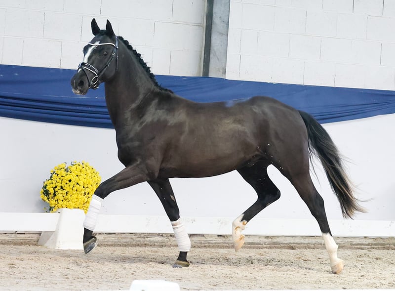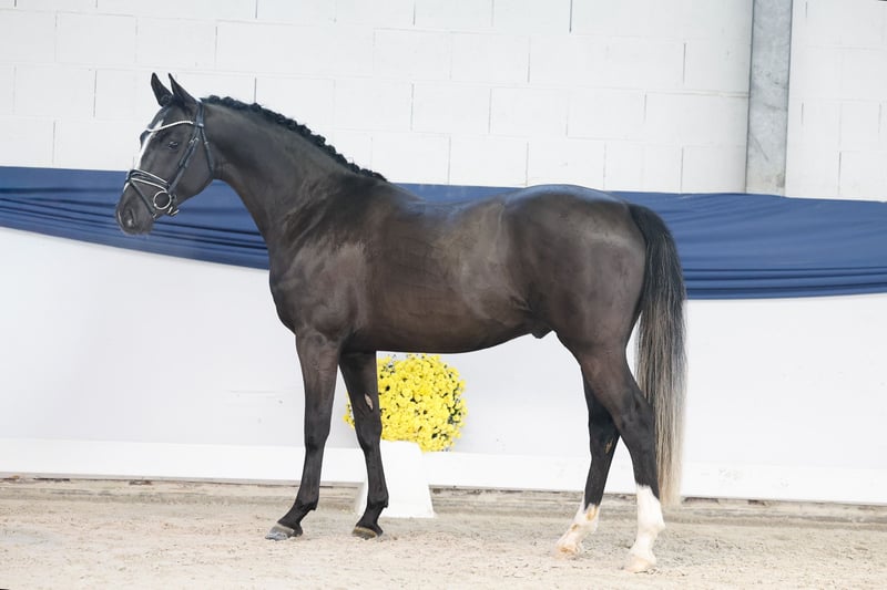In unserer Kollektion stehen streng selektierte Youngster f�r alle Anspr�che: Ausbildungs-, Zucht- und Kinderponys Hier gelangen Sie zur Gesamtkollektion: https://ponyforum.auction Mit diesem Rappen steht ein großrahmiger Youngster in unserer Kollektion, den man sich schon jetzt hervorragend als Reitpony vorstellen kann. Dropjes Black Boy wird auch größere Reiter hervorragend abdecken, er hat eine hervorragende Halsung und eine sportive Linierung. Und mit seinem lackschwarzen Fell fällt er inmitten der aufgehellten Reitponys umso mehr auf! Er ist schon gut longiert und kennt Freispringen. Aufmerksam und kooperativ arbeitet er mit seinem Ausbilder zusammen und er lernt schnell. Ein unkomplizierter Youngster, der sicherlich einen top Allrounder abgeben wird. Direkt vom Züchter.