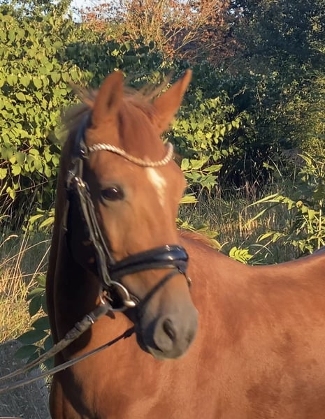 Leuchtendes Rot - trifft super Charakter ! Harrytani ist ein Deutsches Reitpony mit drei sehr guten Grundgangarten , er hat eine tolle Hinterhand und viel Raumgriff . Sein Potential für die Dressur ist qualitativ wertvoll . Harrytani ist sehr menschenbezogen und lernt schnell - er möchte sehr gefallen und hat eine gute Einstellung , Er befindet sich in Körvorbereitung und kann von uns zur Frühjahrkörung vorgestellt werden . Er wird als Hengst verkauft , könnte aber auch hier kastriert werden . Der Vollbruder ist zweimaliger Euro Teilnehmer . Mutter selbst ist erfolgreich im Sport gegangen . Weitere Infos -01736782519