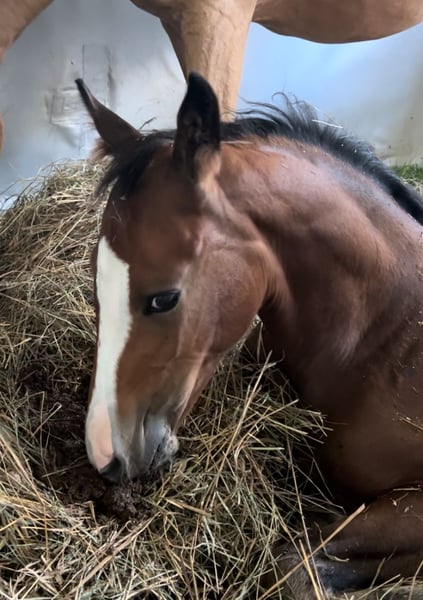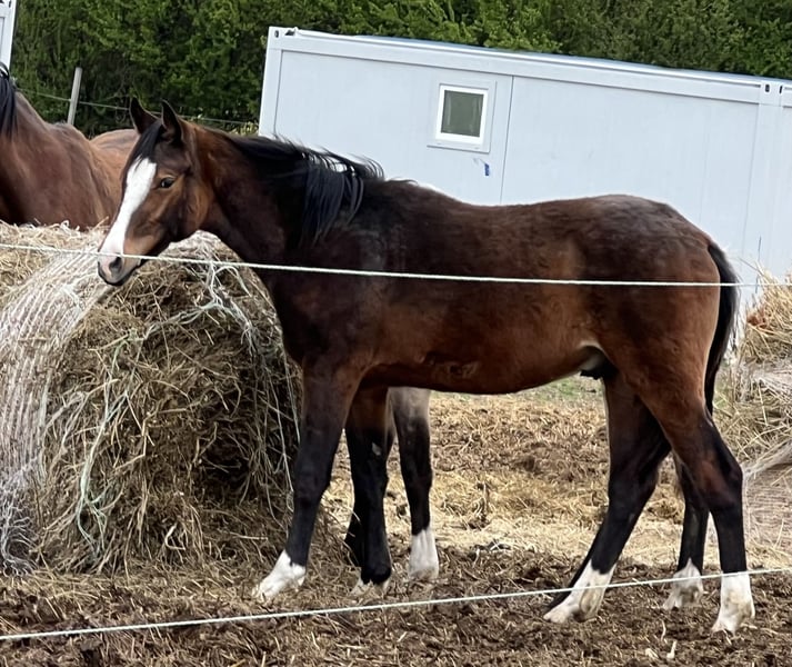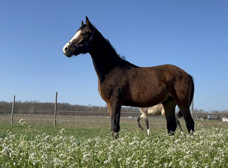 Cool as Ice is a 1-year-old riding pony stallion. He is expected to reach full height and impresses with his muscular, strong build and his incredible temperament ♥️ He is not a kicker, but he certainly doesn't need to hide! His genetics suggest he could also excel in jumping! His mother is Crown It Girl — herself a two-time mare dam and a successful sport horse up to class L** with a rider. His father is Venustas Cool Edition, a stallion with a wonderful temperament who has achieved success in both disciplines and sired successful offspring!