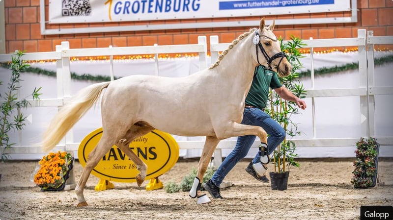 Rickhofs Glücksgriff überzeugte erst vor wenigen Tagen anlässlich der Körung in Wickrath mit seiner herausragenden Qualität und sicherte sich einen der begehrten Titel der Prämienanwartschaft. Der Hengst stammt von Golden Grey NRW, der selbst zahlreiche sportliche Top-Erfolge vorweisen kann. Golden Grey NRW wurde bei seiner Körung zum zweiten Reservesieger gekürt und konnte unter dem Sattel von Mareike Mimberg den Titel des Vize-Bundeschampions erringen. Diese sportliche und züchterische Klasse spiegelt sich eindrucksvoll in Rickhofs Glücksgefühl wider, der sich mit seiner Qualität, Ausstrahlung und Perspektive als hochinteressanter Kandidat für Zucht und Sport präsentiert.