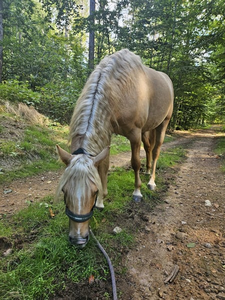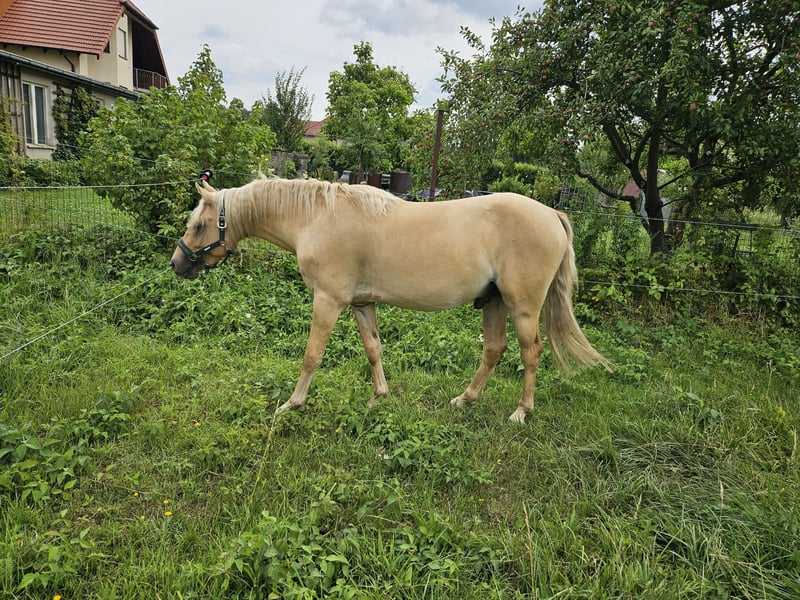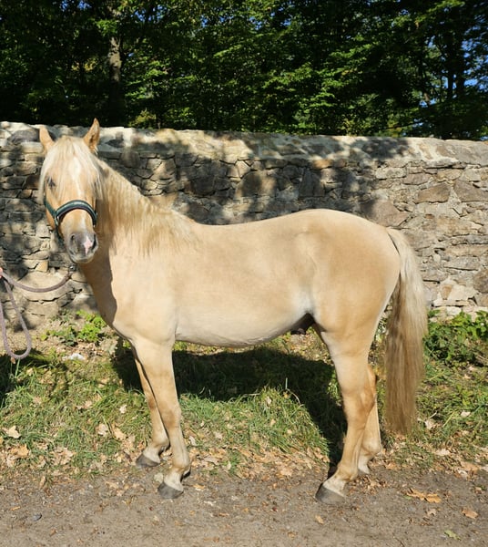 Je recherche un nouveau foyer cinq étoiles pour mon étalon DRP issu de ma reproduction, où il pourra continuer à se développer et briller en tant que partenaire de loisir ou compagnon sportif de premier ordre. Night Desire est un poney allemand de selle Palomino, âgé de 2,5 ans, avec une taille finale prévue d’environ 140 cm. Il grandit en pension ouverte, est régulièrement ferré et déparasitée. Il marche docilement à la main et apprend très rapidement. Visite possible à 01468 Moritzburg. Prix négociable.