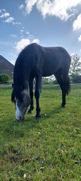 Cosmo Grey ist ein fast dreijähriger, wunderschöner und sportlich-moderner Reitpony-Hengst der ins Endmaß wachsen wird. Auch aufgrund seiner Abstammung, seiner 3 sehr guten GGA, der hervorragenden Leistungsbereitschaft und Lernfähigkeit hat er alle Chancen auf eine Sportkarriere oder Köraspirant zu werden und in den Zuchteinsatz zu gehen.Er ist bei uns geboren sowie liebevoll und artgerecht aufgewachsen. Cosmo hat eine außergewöhnliche Fellfarbe, zur Zeit dunkelbraun -stichelhaarig, kann aber dunkler Schimmel werden. Er kennt Bodenarbeit,Trense,Longe und ist auch beim Schmied und Hänger fahren artig. Er ist selbstverständlich regelmäßig entwurmt und geimpft.