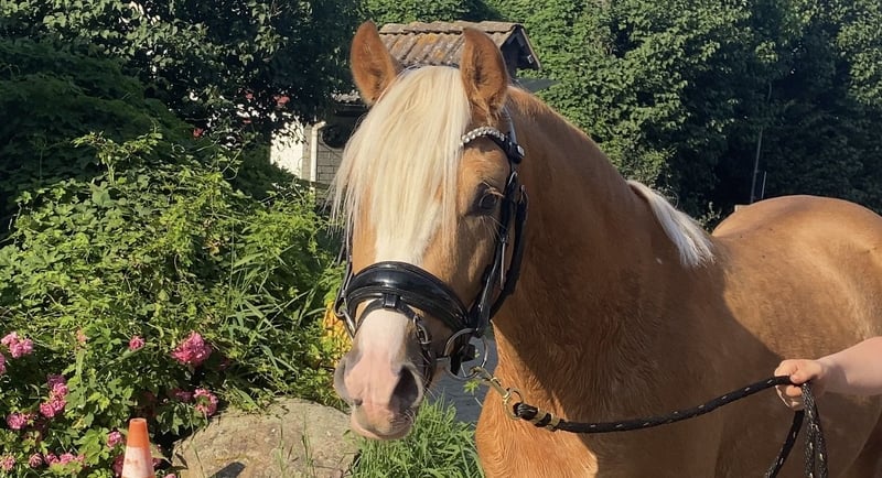 Corleon a une taille au garrot de 146 cm. Avec sa magnifique robe palomino, il est vraiment un attrait. Ce hongre a le potentiel de devenir un excellent poney pour enfants en dressage. Avec sa nature douce et son excellente attitude, il apportera beaucoup de joie à sa nouvelle famille. Il est bien socialisé, amical dans ses interactions et a un caractère équilibré. Il a été élevé dans les magnifiques prairies de la ferme équestre Buchenhof. Corleon est très bien éduqué et connaît déjà des exercices légers en main. Si vous êtes intéressé ou pour plus d'informations, veuillez me contacter. N'hésitez pas à venir nous rendre visite et à rencontrer ce superbe hongre en personne !