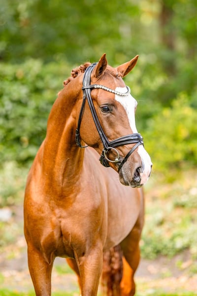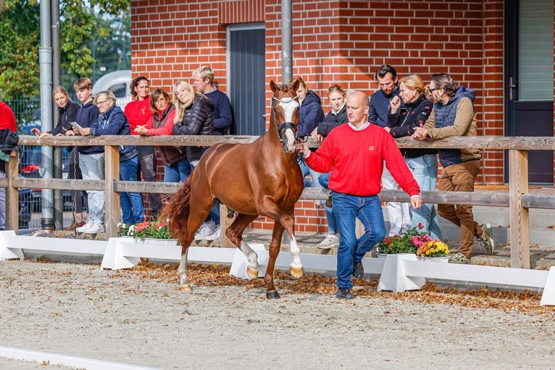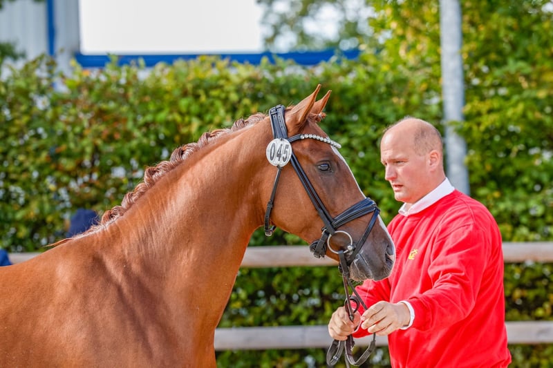A promising, well-mannered young stallion with impressive XXL size and expressive movement. From the very beginning of his training, this colt has captivated us with his eagerness to learn and his strong work ethic. His outstanding basic qualities further set him apart. He comes from the first foal crop of the Bundessiegerstute Cosmo Genial, who herself has achieved competitive placements up to class L. His dam is the elite mare Doreena, who has already produced three state premium daughters and two licensed sons. Additionally, she has numerous sport-successful offspring. This colt boasts an excellent pedigree and is perfectly suited for further training and development by a motivated rider or breeder.