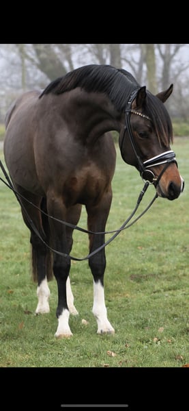 Mon Beau VR geboren am 09.04.2022 mit dem aktuellen Stockmaß von 150 cm sucht ein förderndes zu Hause. Dieser 4-jährige gekörte Hengst von Movie Star x Campari gewinnt durch seine außerordentliche Rittigkeit, er ist absolut klar im Kopf und konzentriert. Selbst die spektakulärsten Kulissen beeindrucken diesen jungen Mann nicht. Mon Beau hat sich 3-jährig für das Bundeschampionat in Warendorf souverän mit den Noten über 8 qualifiziert und auch an dem Bundeschampionat teilgenommen. Lektionen der Klasse L, wie Kurzkehrt und Außengalopp nimmt er einfach spielerisch mit. Ein Pony was einfach Spaß macht auszubilden und in allen drei Grundgangarten alles mitbringt, was man sich wünscht. Aktuell wird das Pony bei uns auch von Kindern geritten. Mon Beau ist ein absolutes Traumpony und wird vom Züchter nur in allerbeste Hände verkauft. Das Pony liegt am Anfang der angegebenen Preiskategrie. Videos werden gerne auf Anfrage versendet.