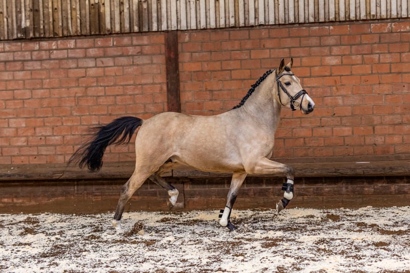 Verkauft wird ein Falbhengst von Vogelenzangs Mister Viggo x Golden Gery. Er ist leicht angerittenund hat gute GGA. Beim Freispringen zeigt er einen sehr guten Sprung, weswegen er sich auch für die Vielseitigkeit eignen könnte. AKU vorhanden. Kennt Hänger fahren, ist ausgiebig longiert und schon sicher im Umgang. I Gerne Termin zum Kennenlernen, gerne per whatsapp unter 0157-55209447 vereinbaren.